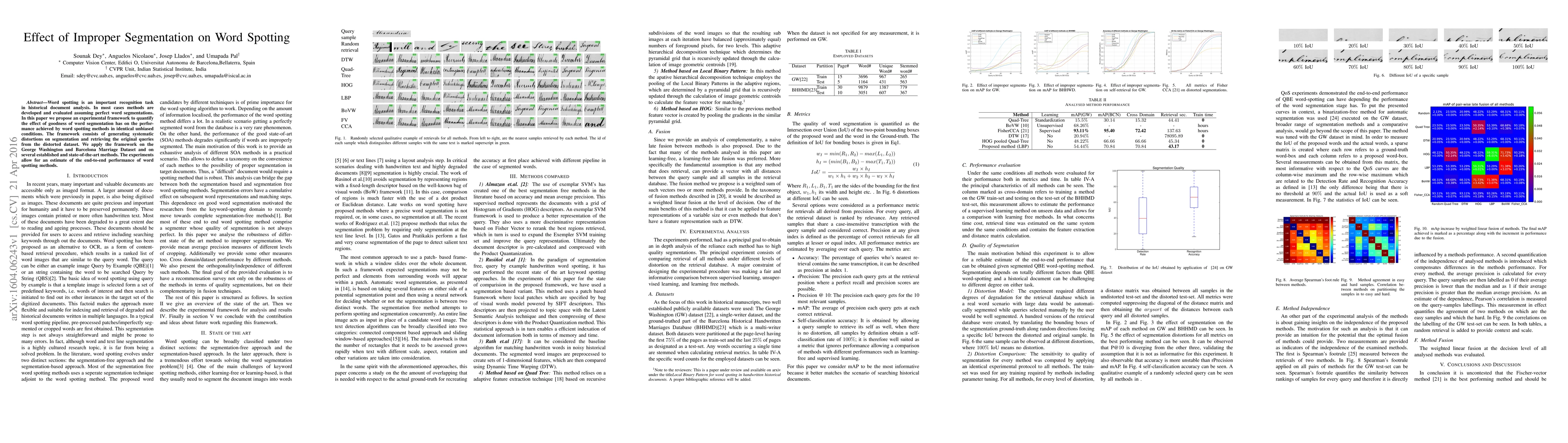 Word spotting is an important recognition task in historical document analysis. In most cases methods are developed and evaluated assuming perfect word segmentations. In this paper we propose an experimental framework to quantify the effect of goodness of word segmentation has on the performance achieved by word spotting methods in identical unbiased conditions. The framework consists of generating systematic distortions on segmentation and retrieving the original queries from the distorted dataset. We apply the framework on the George Washington and Barcelona Marriage Dataset and on several established and state-of-the-art methods. The experiments allow for an estimate of the end-to-end performance of word spotting methods.