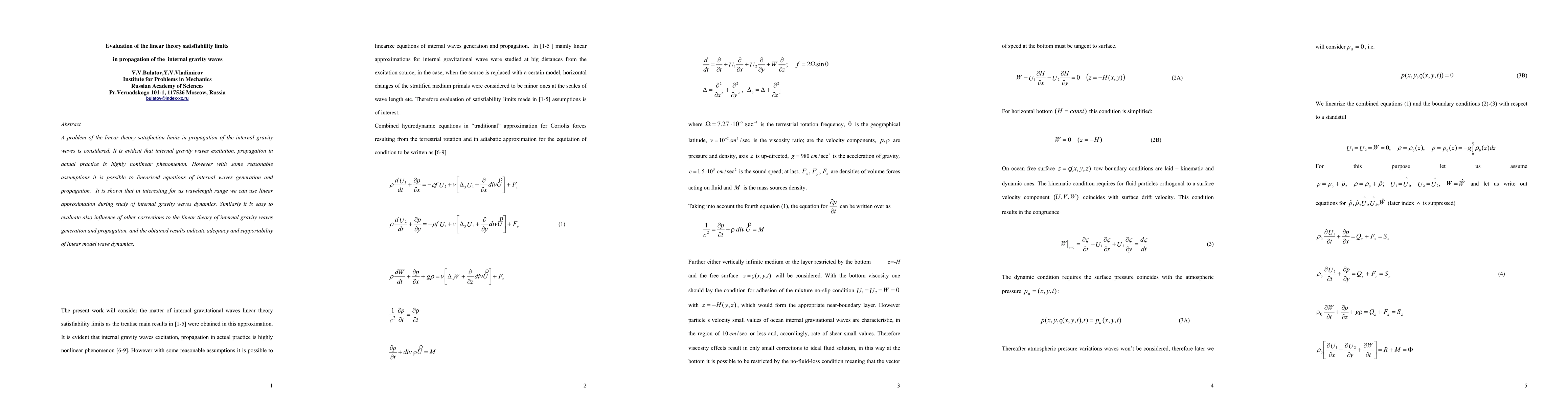 A problem of finding the linear theory satisfaction limits in propagation of the internal gravity waves is considered. It is evident that internal gravity waves excitation, propagation in actual practice is highly nonlinear phenomenon. However with some reasonable assumptions it is possible to linearize equations of internal waves generation and propagation. It is shown that in interesting for us wavelength range we can use linear approximation during study of internal gravity waves dynamics. Similarly it is easy to evaluate also influence of other corrections to the linear theory of internal gravity waves generation and propagation, and the obtained results indicate adequacy and supportability of linear model wave dynamics.