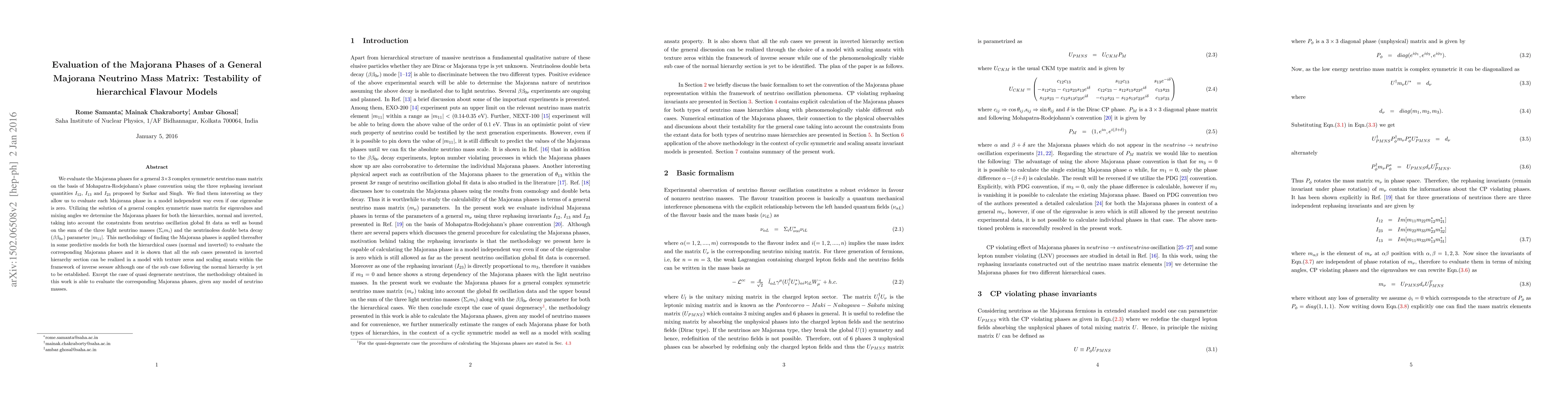 This paper evaluates Majorana phases for a general $3\times3$ complex symmetric neutrino mass matrix using invariant quantities, determining these phases in a model-independent way. It applies this methodology to hierarchical flavor models, showing that inverted hierarchy cases can be realized with texture zeros and scaling ansatz within the inverse seesaw framework.