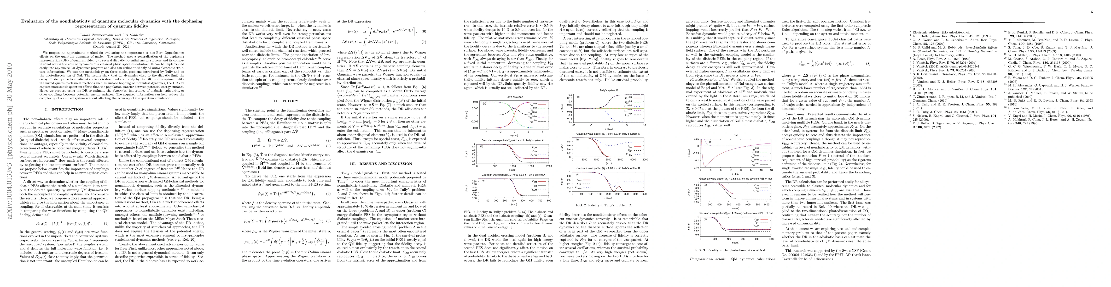 This paper proposes an approximate method using the dephasing representation of quantum fidelity to evaluate non-Born-Oppenheimer effects in quantum molecular dynamics. The method is computationally efficient and can be easily integrated into existing molecular dynamics programs, showing accurate results for model problems and the photodissociation of NaI.