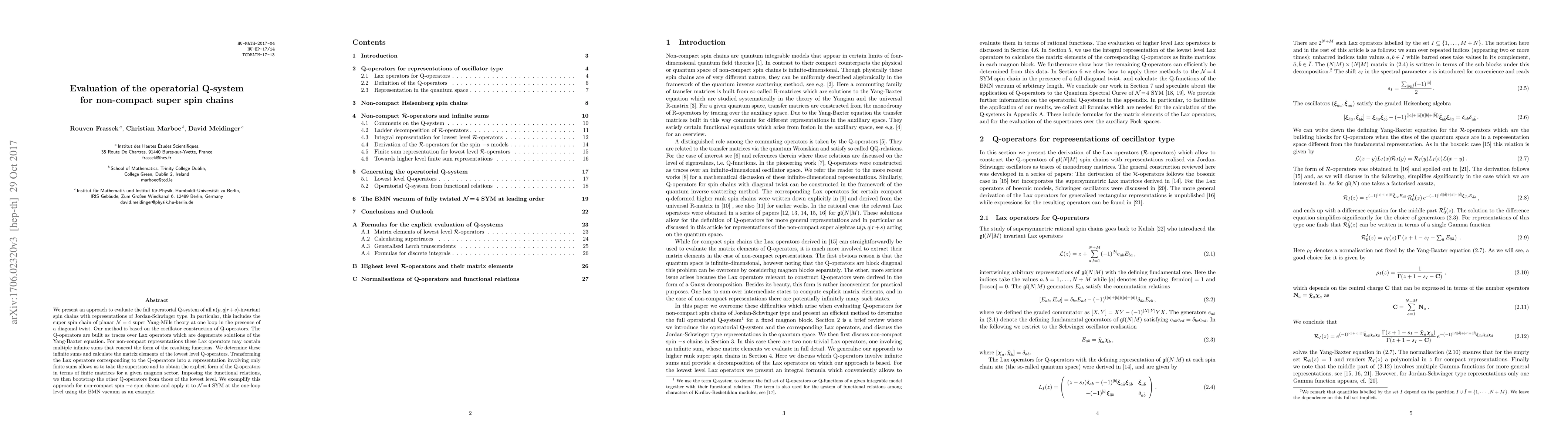 This paper evaluates the operatorial Q-system for non-compact super spin chains using an oscillator construction of Q-operators, determining infinite sums and calculating matrix elements. It applies this method to $\mathcal{N}=4$ super Yang-Mills theory at one loop, demonstrating the approach with non-compact spin chains and the BMN vacuum.