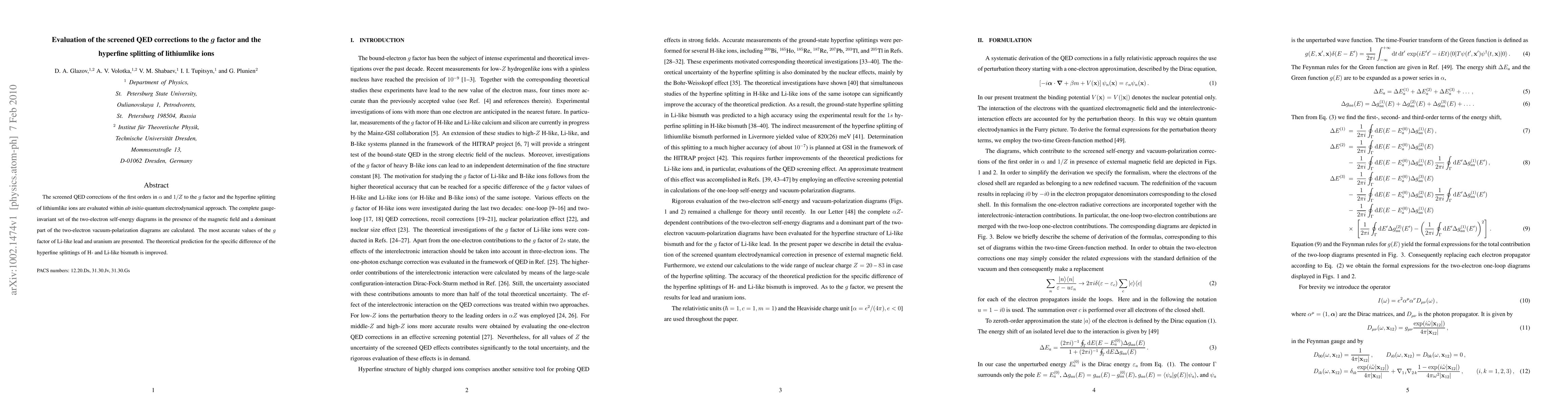 This paper evaluates first-order QED corrections to the g factor and hyperfine splitting in lithiumlike ions using an ab initio quantum electrodynamical approach. It presents highly accurate g factor values for Li-like lead and uranium and improves the theoretical prediction for the hyperfine splitting difference between H- and Li-like bismuth.