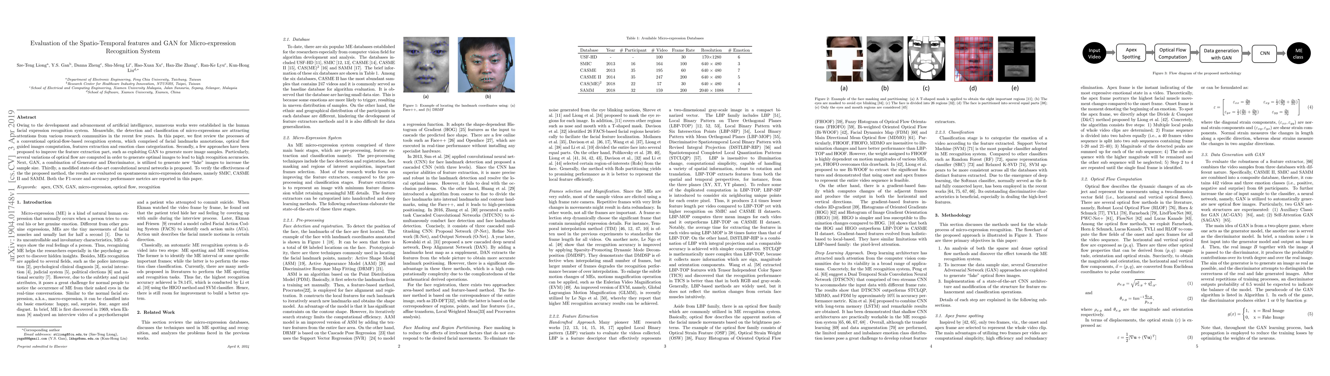 Owing to the development and advancement of artificial intelligence, numerous works were established in the human facial expression recognition system. Meanwhile, the detection and classification of micro-expressions are attracting attentions from various research communities in the recent few years. In this paper, we first review the processes of a conventional optical-flow-based recognition system, which comprised of facial landmarks annotations, optical flow guided images computation, features extraction and emotion class categorization. Secondly, a few approaches have been proposed to improve the feature extraction part, such as exploiting GAN to generate more image samples. Particularly, several variations of optical flow are computed in order to generate optimal images to lead to high recognition accuracy. Next, GAN, a combination of Generator and Discriminator, is utilized to generate new "fake" images to increase the sample size. Thirdly, a modified state-of-the-art Convolutional neural networks is proposed. To verify the effectiveness of the the proposed method, the results are evaluated on spontaneous micro-expression databases, namely SMIC, CASME II and SAMM. Both the F1-score and accuracy performance metrics are reported in this paper.