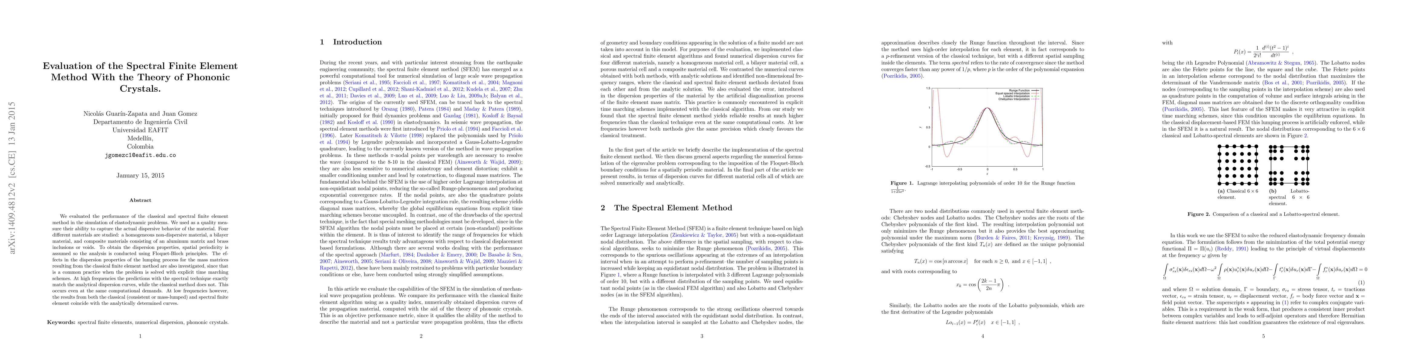 We evaluated the performance of the classical and spectral finite element method in the simulation of elastodynamic problems. We used as a quality measure their ability to capture the actual dispersive behavior of the material. Four different materials are studied: a homogeneous non-dispersive material, a bilayer material, and composite materials consisting of an aluminum matrix and brass inclusions or voids. To obtain the dispersion properties, spatial periodicity is assumed so the analysis is conducted using Floquet-Bloch principles. The effects in the dispersion properties of the lumping process for the mass matrices resulting from the classical finite element method are also investigated, since that is a common practice when the problem is solved with explicit time marching schemes. At high frequencies the predictions with the spectral technique exactly match the analytical dispersion curves, while the classical method does not. This occurs even at the same computational demands. At low frequencies however, the results from both the classical (consistent or mass-lumped) and spectral finite element coincide with the analytically determined curves. Surprisingly, at low frequencies even the results obtained with the artificial diagonal mass matrix from the classical technique exactly match the analytic dispersion curves.