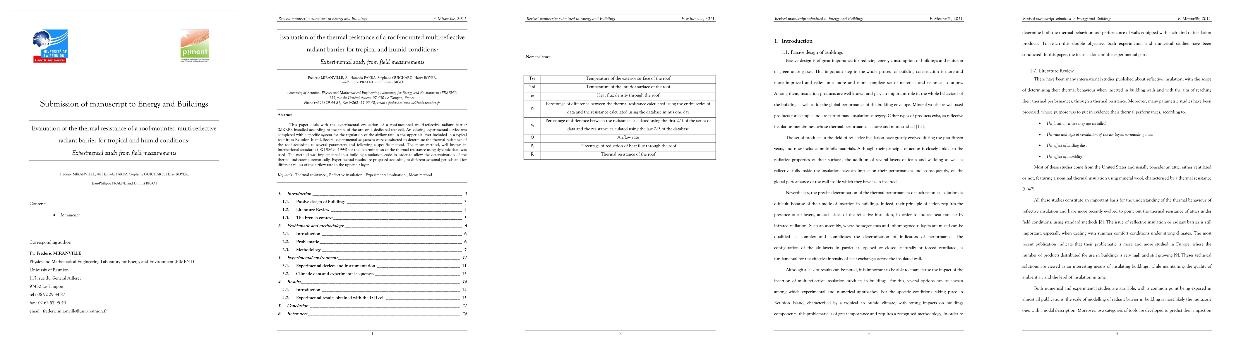 This study evaluates the thermal resistance of a roof-mounted radiant barrier in tropical and humid conditions through field measurements. It provides key findings on thermal performance under different seasonal periods and airflow rates.