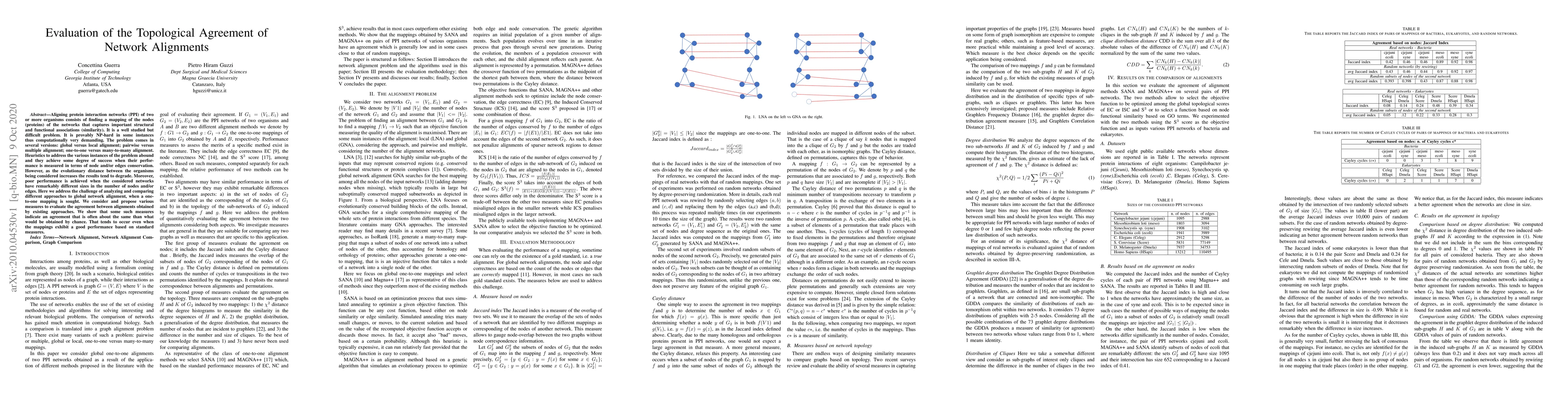 Aligning protein interaction networks (PPI) of two or more organisms consists of finding a mapping of the nodes (proteins) of the networks that captures important structural and functional associations (similarity). It is a well studied but difficult problem. It is provably NP-hard in some instances thus computationally very demanding. The problem comes in several versions: global versus local alignment; pairwise versus multiple alignment; one-to-one versus many-to-many alignment. Heuristics to address the various instances of the problem abound and they achieve some degree of success when their performance is measured in terms of node and/or edges conservation. However, as the evolutionary distance between the organisms being considered increases the results tend to degrade. Moreover, poor performance is achieved when the considered networks have remarkably different sizes in the number of nodes and/or edges. Here we address the challenge of analyzing and comparing different approaches to global network alignment, when a one-to-one mapping is sought. We consider and propose various measures to evaluate the agreement between alignments obtained by existing approaches. We show that some such measures indicate an agreement that is often about the same than what would be obtained by chance. That tends to occur even when the mappings exhibit a good performance based on standard measures.