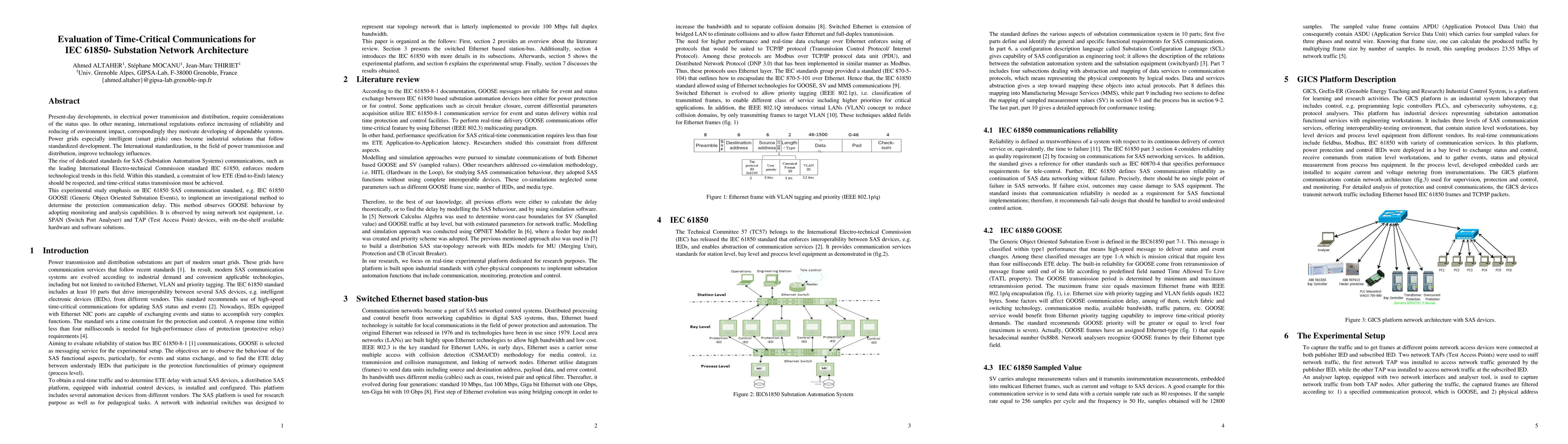 This paper evaluates time-critical communication protocols within the IEC 61850 substation network architecture, focusing on low latency requirements for GOOSE messages to ensure reliable smart grid operations. The study employs monitoring tools like SPAN and TAP to analyze communication delays.