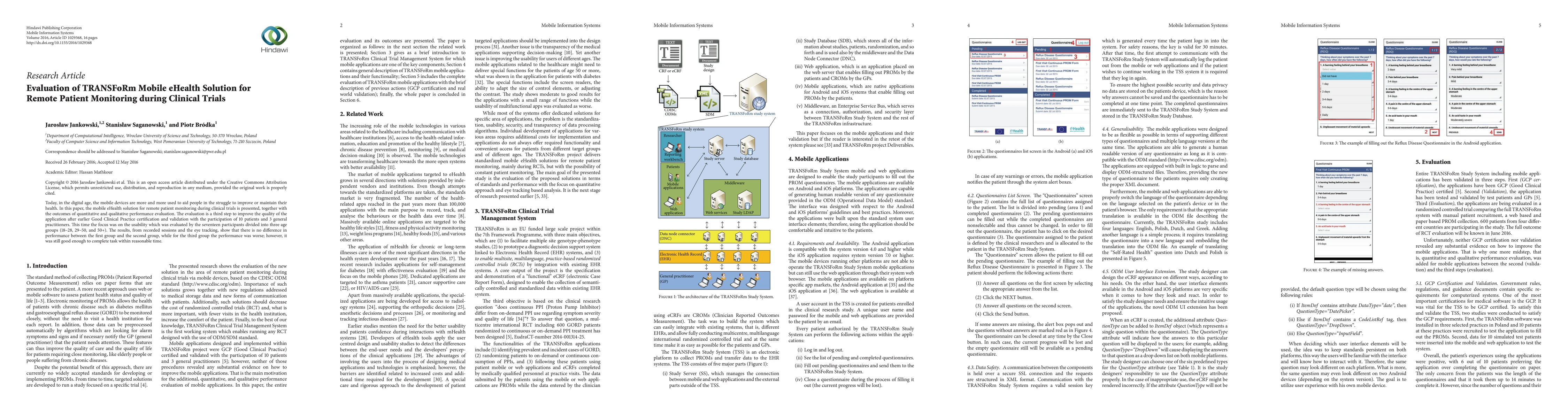 A mobile eHealth solution for remote patient monitoring during clinical trials was evaluated for usability, with mixed results across age groups. Performance varied, but overall completion of tasks within a reasonable time frame was maintained across the three age groups tested.
