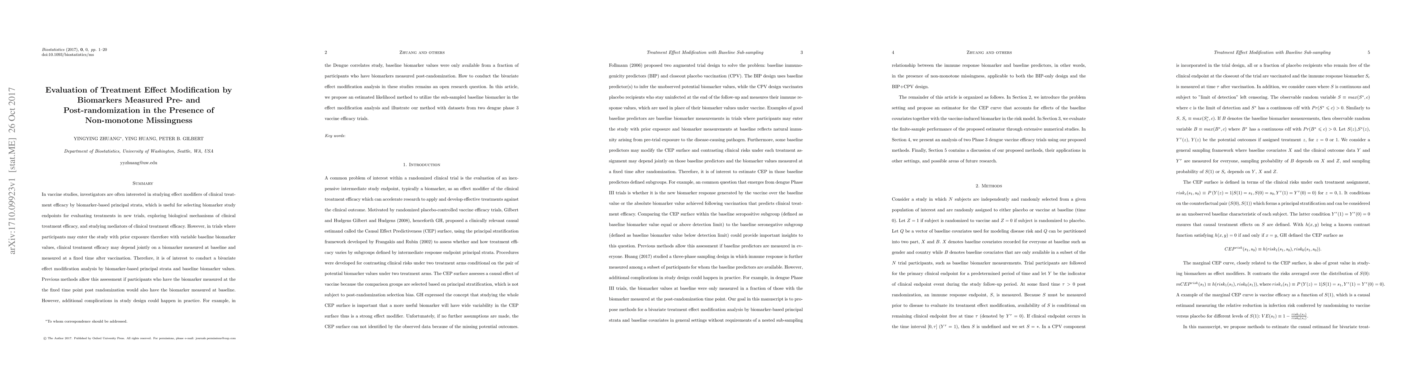 In vaccine studies, investigators are often interested in studying effect modifiers of clinical treatment efficacy by biomarker-based principal strata, which is useful for selecting biomarker study endpoints for evaluating treatments in new trials, exploring biological mechanisms of clinical treatment efficacy, and studying mediators of clinical treatment efficacy. However, in trials where participants may enter the study with prior exposure therefore with variable baseline biomarker values, clinical treatment efficacy may depend jointly on a biomarker measured at baseline and measured at a fixed time after vaccination. Therefore, it is of interest to conduct a bivariate effect modification analysis by biomarker-based principal strata and baseline biomarker values. Previous methods allow this assessment if participants who have the biomarker measured at the the fixed time point post randomization would also have the biomarker measured at baseline. However, additional complications in study design could happen in practice. For example, in the Dengue correlates study, baseline biomarker values were only available from a fraction of participants who have biomarkers measured post-randomization. How to conduct the bivariate effect modification analysis in these studies remains an open research question. In this article, we propose an estimated likelihood method to utilize the sub-sampled baseline biomarker in the effect modification analysis and illustrate our method with datasets from two dengue phase 3 vaccine efficacy trials.