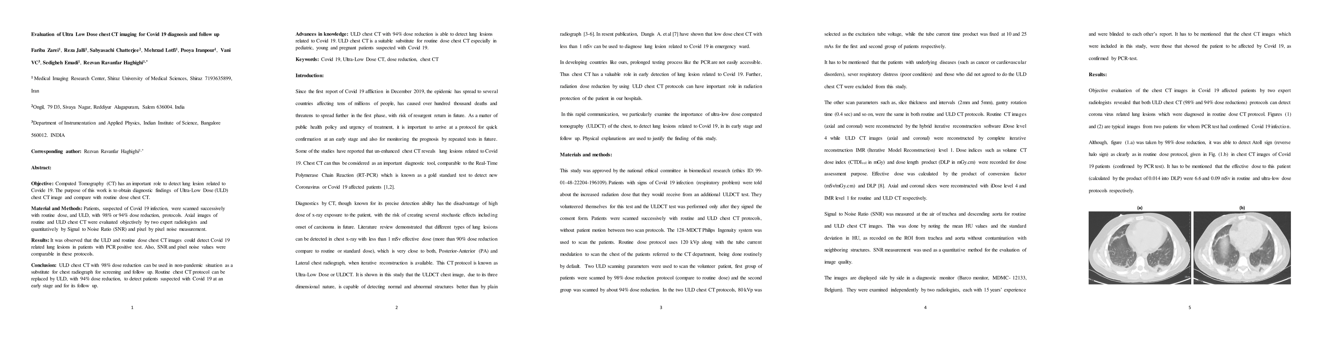 This study evaluates the diagnostic capability of Ultra Low Dose (ULD) chest CT compared to routine dose CT for Covid-19 detection, finding comparable detection rates and image quality, suggesting ULD CT as a lower-dose alternative for screening and follow-up.