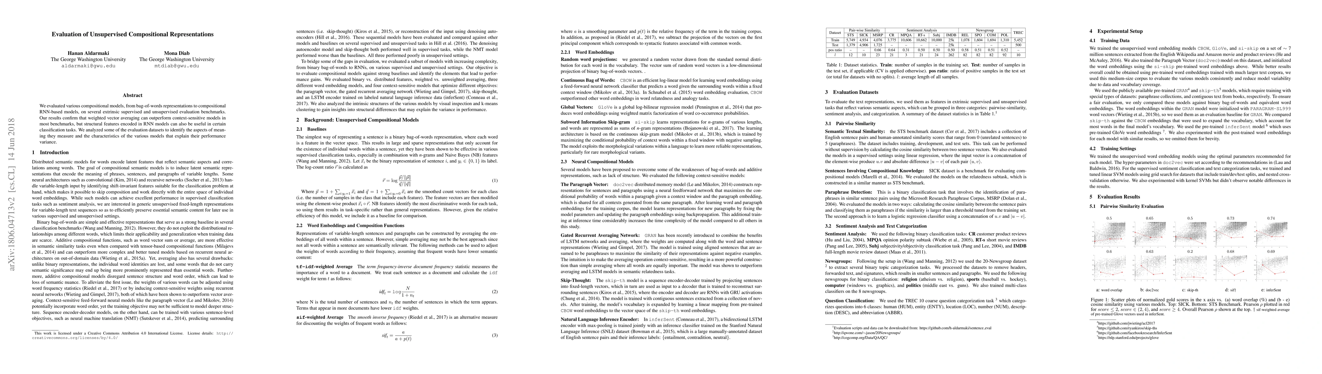 This paper evaluates different compositional models, finding that weighted vector averaging often outperforms context-sensitive models, while RNN-based models show utility in specific classification tasks. The study also analyzes evaluation datasets to understand their meaning measurements and the factors influencing model performance.