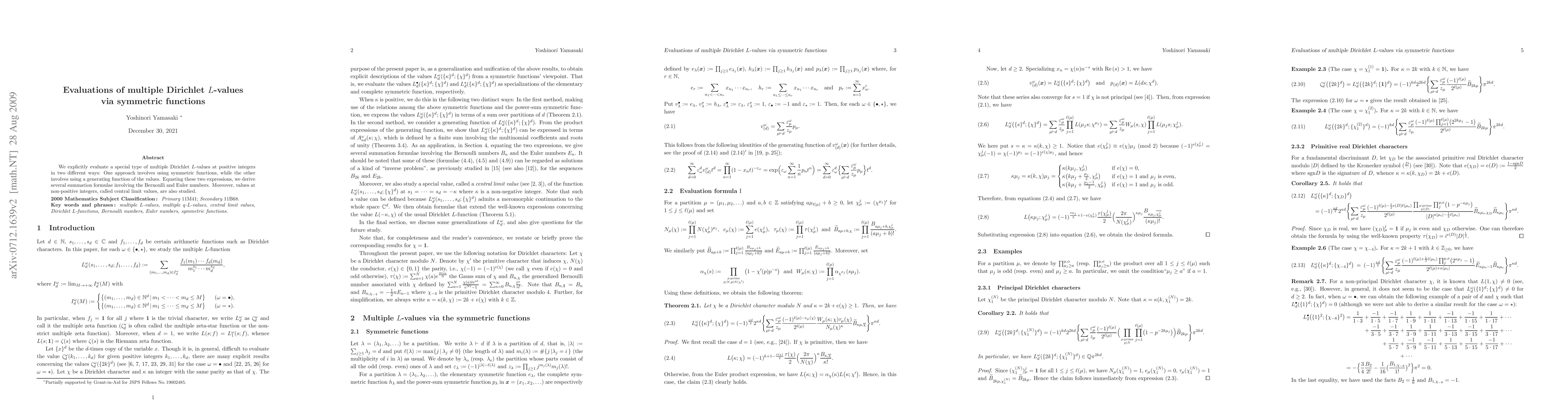 This paper evaluates special multiple Dirichlet $L$-values at positive integers using symmetric functions and generating functions, deriving summation formulae involving Bernoulli and Euler numbers. It also investigates central limit values at non-positive integers.
