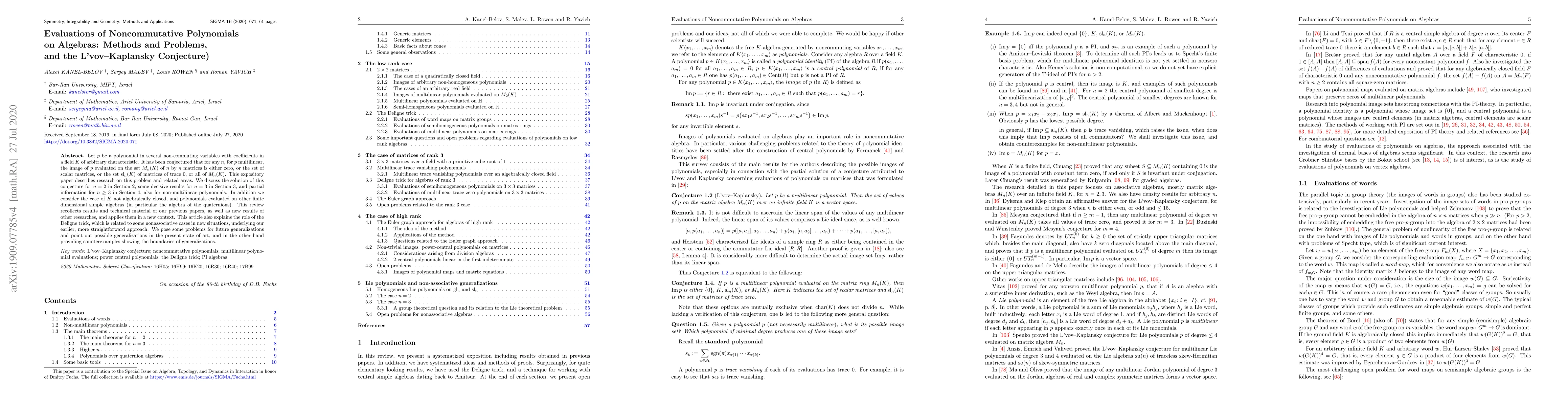 This paper explores the L'vov-Kaplansky Conjecture concerning noncommutative polynomial evaluations on matrix algebras. It details solutions for n=2, progress for n=3, and partial insights for n>=3, including non-multilinear cases and algebras beyond fields. The article also discusses the Deligne trick's application in nonassociative scenarios, posing problems for future research while providing counterexamples to illustrate generalization limits.
