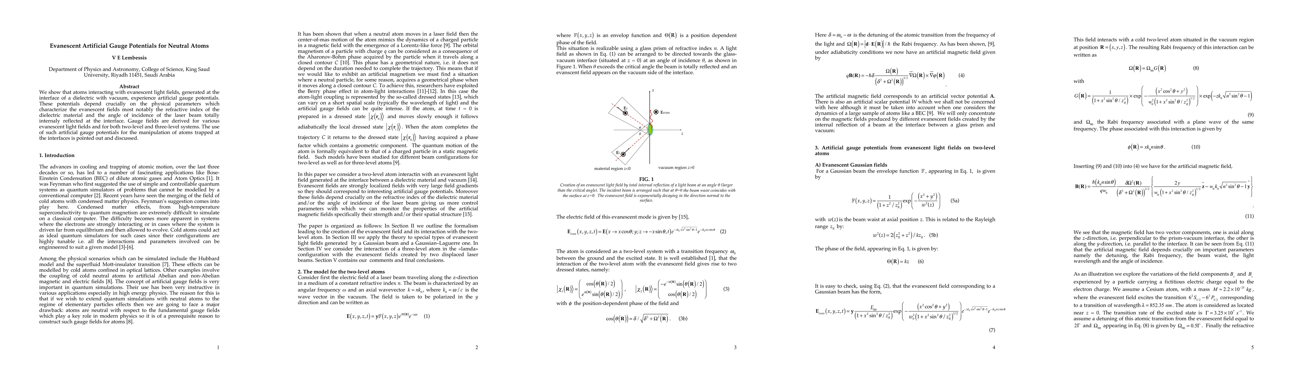 This research demonstrates that neutral atoms interacting with evanescent light fields at dielectric interfaces experience artificial gauge potentials influenced by the dielectric's refractive index and the laser's incidence angle. These potentials enable the manipulation of trapped atoms at such interfaces.