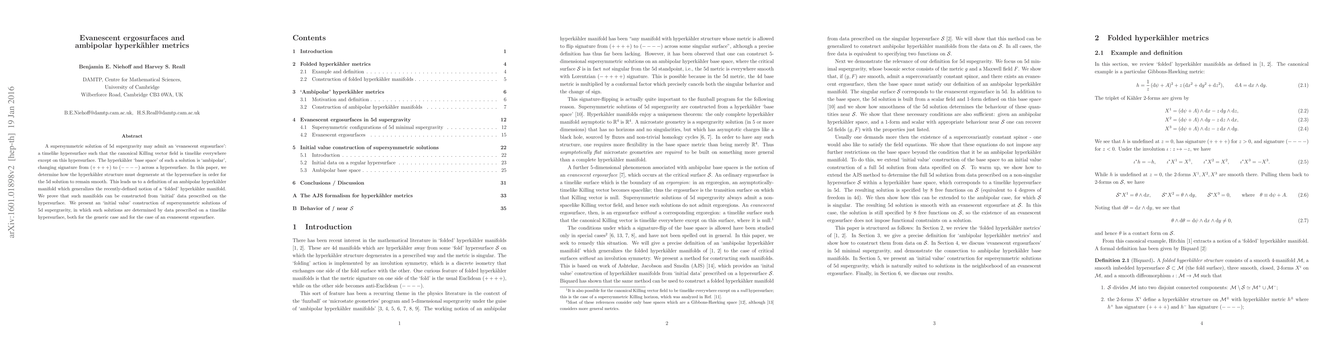 This paper investigates the conditions for a supersymmetric 5d supergravity solution to possess an evanescent ergosurface and defines ambipolar hyperkähler manifolds, proving their construction from prescribed hypersurface data, and presents an initial value formulation for such solutions.
