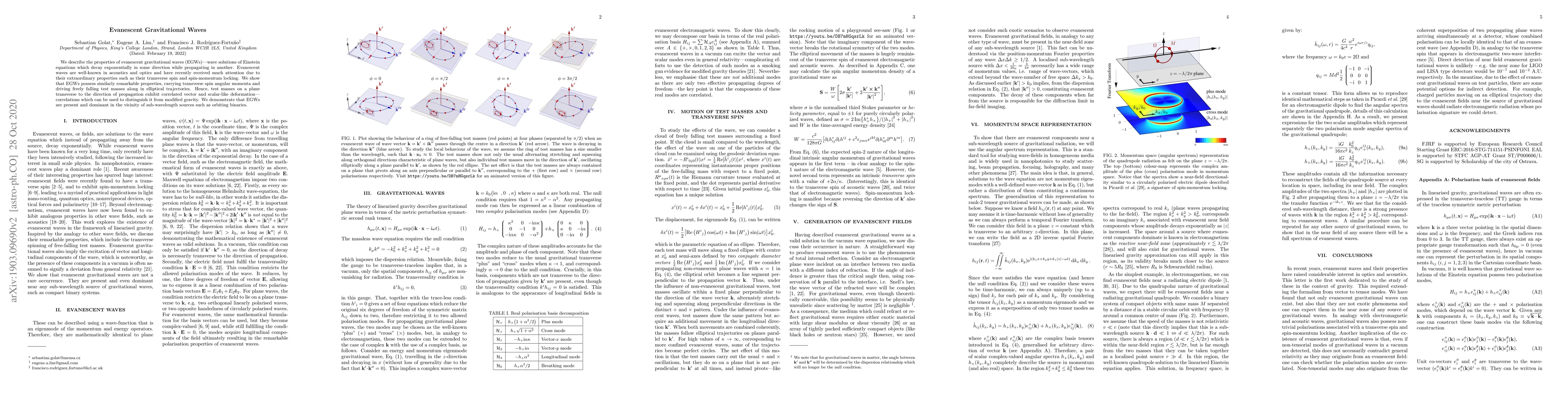 This paper explores evanescent gravitational waves (EGWs), which decay exponentially in one direction while propagating in another, exhibiting transverse spin angular momentum and elliptical trajectories for test masses. These properties allow for distinguishing EGWs from modified gravity and highlight their prevalence near sub-wavelength sources like orbiting binaries.