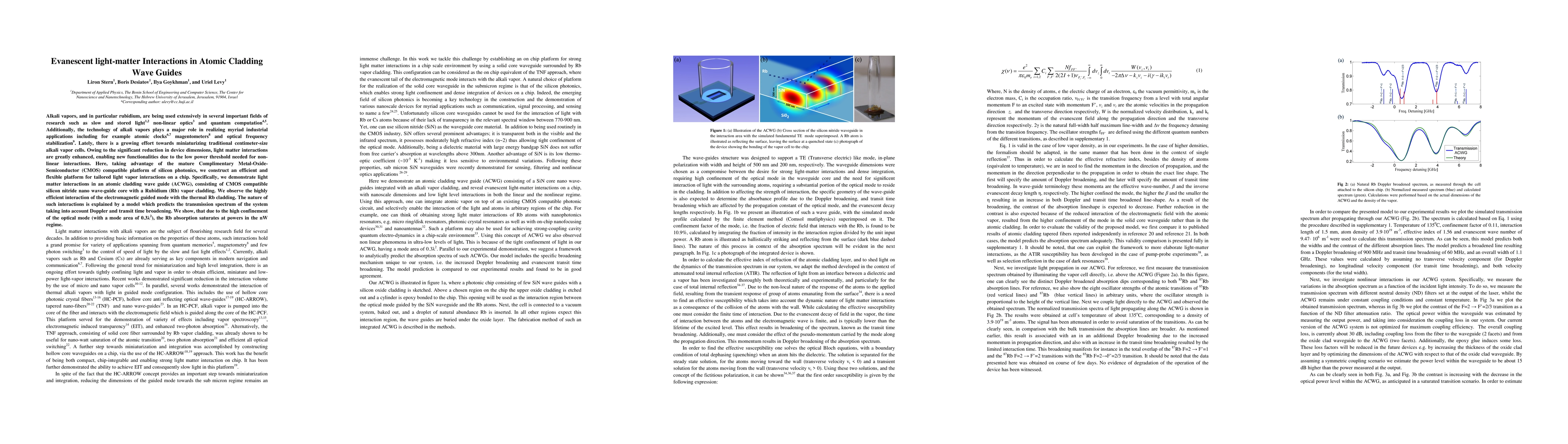 This paper explores the enhanced light-matter interactions in atomic cladding waveguides (ACWGs) using rubidium vapors on a CMOS-compatible silicon photonics platform. The study demonstrates efficient silicon nitride nano-waveguides with Rb vapor cladding, showing significant non-linear interactions at low power levels due to high optical mode confinement.