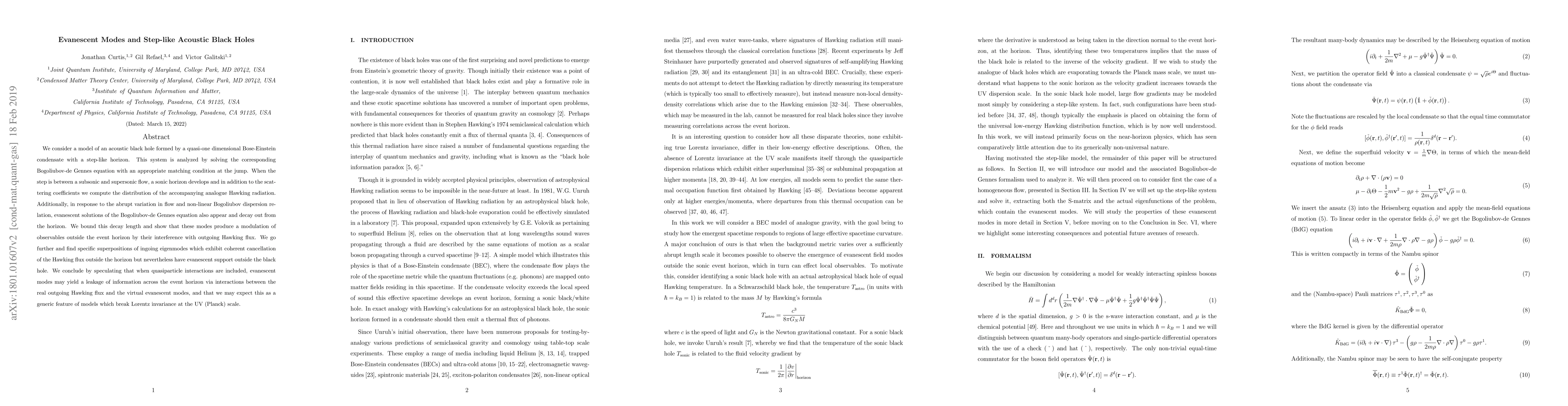 Researchers study acoustic black holes with a step-like horizon, finding evanescent modes that leak information across the event horizon through interactions with virtual modes.