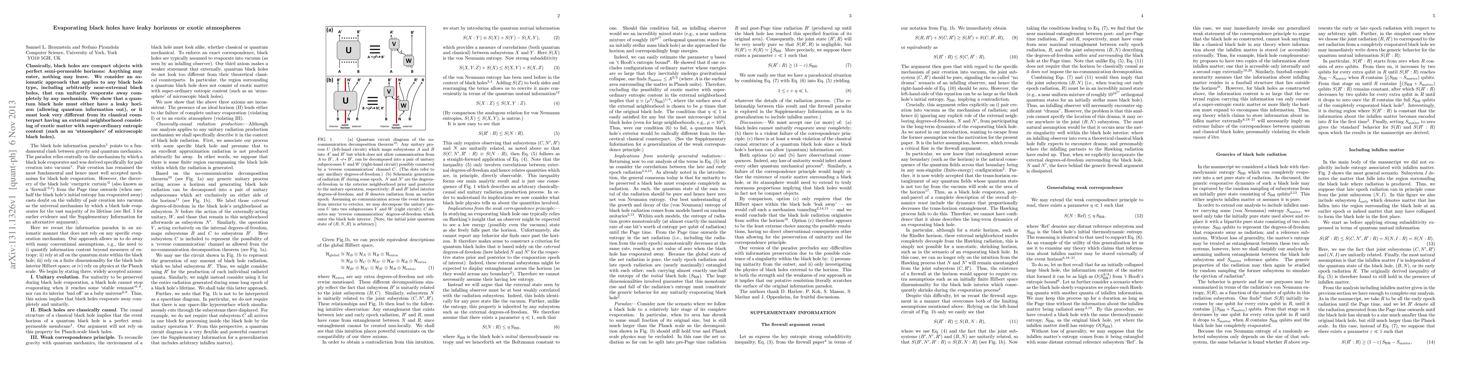 Classically, black holes are compact objects with perfect semi-permeable horizons: Anything may enter, nothing may leave. We consider an axiomatic approach that applies to any black hole type, including arbitrarily near-extremal black holes, that can unitarily evaporate away completely by any mechanism. We show that a quantum black hole must either have a leaky horizon (allowing quantum information out), or it must look very different from its classical counterpart having an external neighborhood consisting of exotic matter with super-ordinary entropic content (such as an `atmosphere' of microscopic black holes).