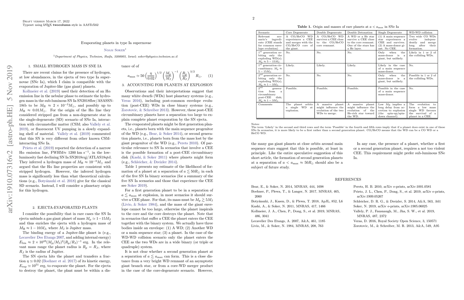 I suggest that in rare cases type Ia supernovae (SNe Ia) evaporate Jupiter-like planets that reside within a=50Ro from the SN, accounting for the presence of ~0.001Mo of hydrogen in the ejecta. It is not easy to form such planets. The common envelope evolution (CEE) might end with the formation of a circumbinary disk with a typical size of R(disk)~10-50Ro. However, the bright central star might prevent the formation of planets. Alternatively, the planets might be first-generation planets that survived the entire evolution. Interestingly, all five SN Ia binary scenarios (core degenerate; double degenerate; double detonation; single degenerate; WD-WD collision) might account for the presence of planets.