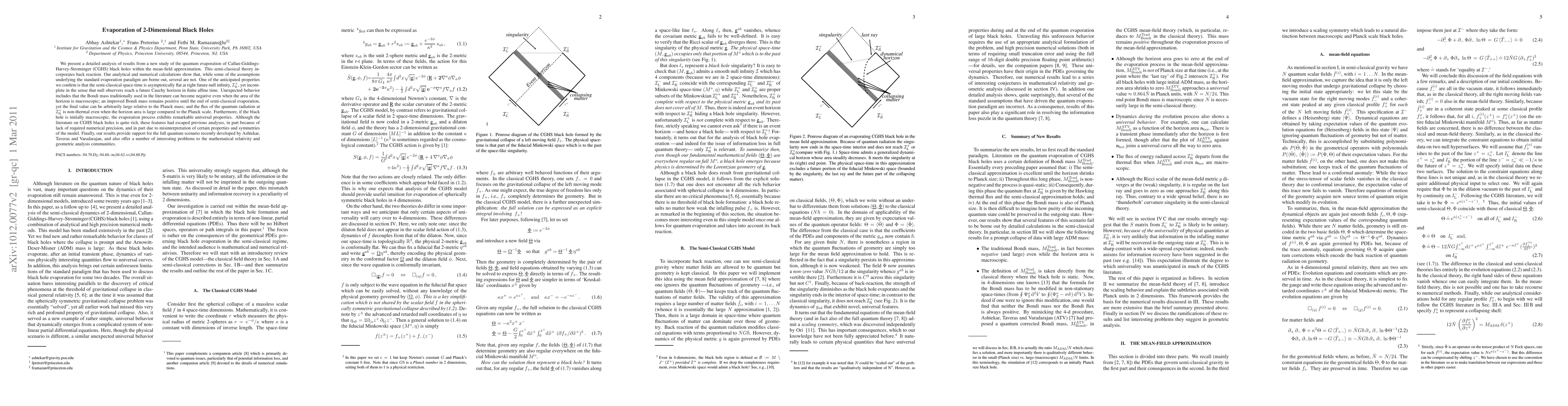 We present a detailed analysis of results from a new study of the quantum evaporation of Callan-Giddings-Harvey-Strominger (CGHS) black holes within the mean-field approximation. This semi-classical theory incorporates back reaction. Our analytical and numerical calculations show that, while some of the assumptions underlying the standard evaporation paradigm are borne out, several are not. One of the anticipated properties we confirm is that the semi-classical space-time is asymptotically flat at right future null infinity, $\spr$, yet incomplete in the sense that null observers reach a future Cauchy horizon in finite affine time. Unexpected behavior includes that the Bondi mass traditionally used in the literature can become negative even when the area of the horizon is macroscopic; an improved Bondi mass remains positive until the end of semi-classical evaporation, yet the final value can be arbitrarily large relative to the Planck mass; and the flux of the quantum radiation at $\spr$ is non-thermal even when the horizon area is large compared to the Planck scale. Furthermore, if the black hole is initially macroscopic, the evaporation process exhibits remarkable universal properties. Although the literature on CGHS black holes is quite rich, these features had escaped previous analyses, in part because of lack of required numerical precision, and in part due to misinterpretation of certain properties and symmetries of the model. Finally, our results provide support for the full quantum scenario recently developed by Ashtekar, Taveras and Varadarajan, and also offer a number of interesting problems to the mathematical relativity and geometric analysis communities.