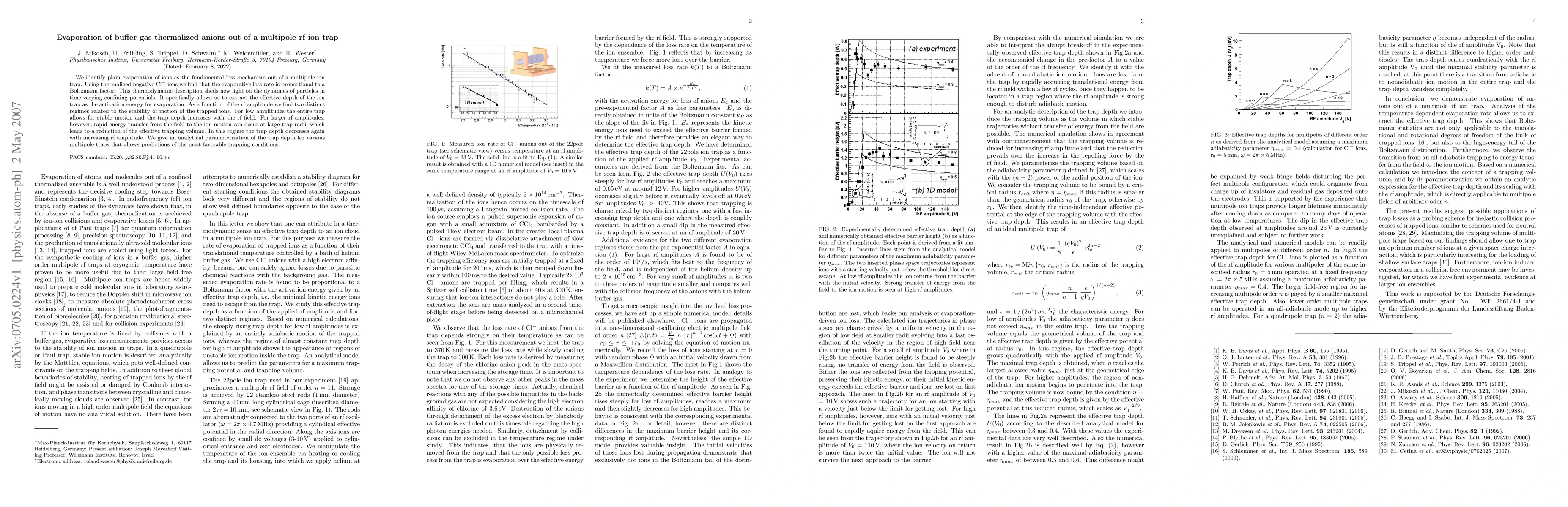 This study identifies plain evaporation as the primary loss mechanism for buffer gas-thermalized anions in a multipole ion trap, revealing a proportional relationship between the evaporative loss rate and a Boltzmann factor. The research provides an analytical parameterization for the effective trap depth, highlighting two distinct regimes based on the radiofrequency amplitude that affect the stability and trapping volume of the ions.