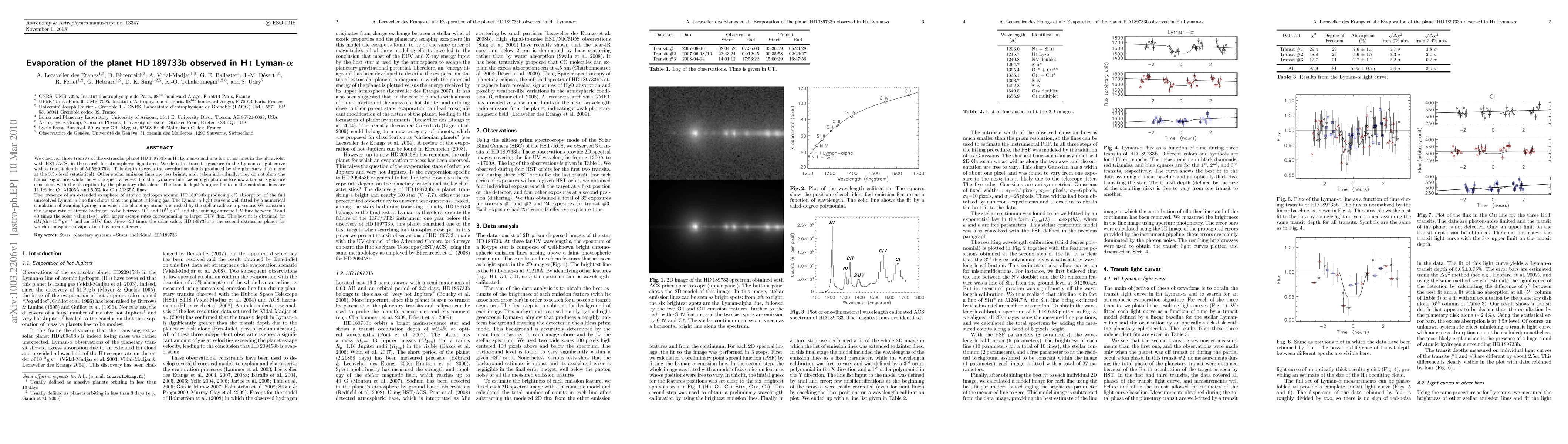 This study observes the extrasolar planet HD189733b during transits in Lyman-alpha, detecting a significant atmospheric signature indicating gas loss. The planet's extended exosphere of atomic hydrogen suggests an escape rate of 10^9 to 10^11 g/s, confirming atmospheric evaporation.