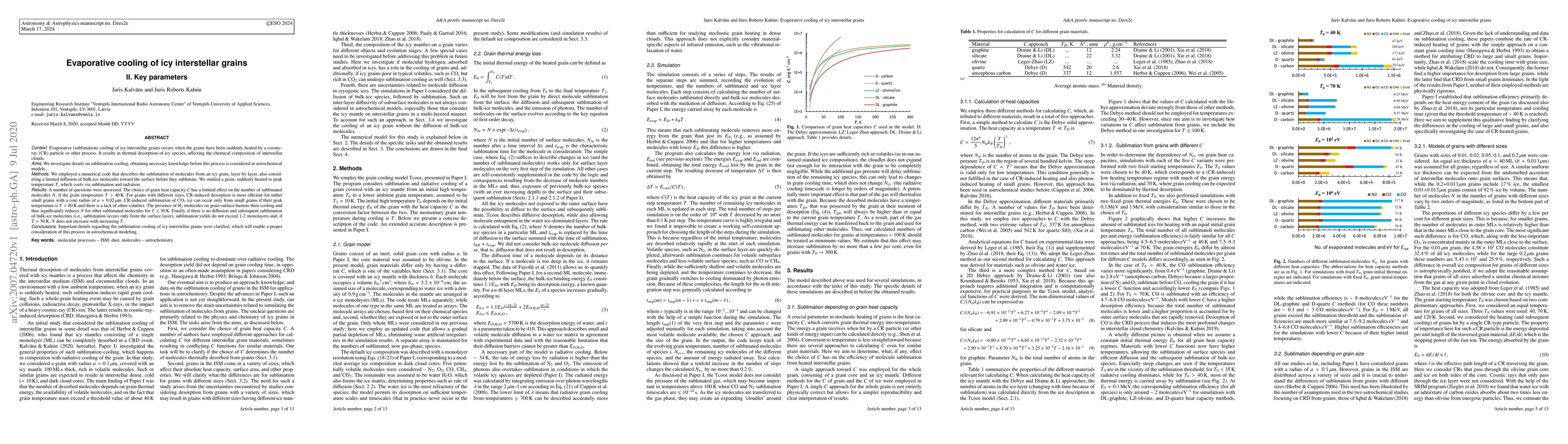This paper investigates the evaporative cooling of icy interstellar grains via sublimation, focusing on key parameters affecting the process. It finds that grain heat capacity has limited impact on sublimation if temperatures exceed 40K, and small grains are most efficient for cosmic-ray induced desorption. The study concludes with insights that will improve astrochemical models of interstellar chemistry.