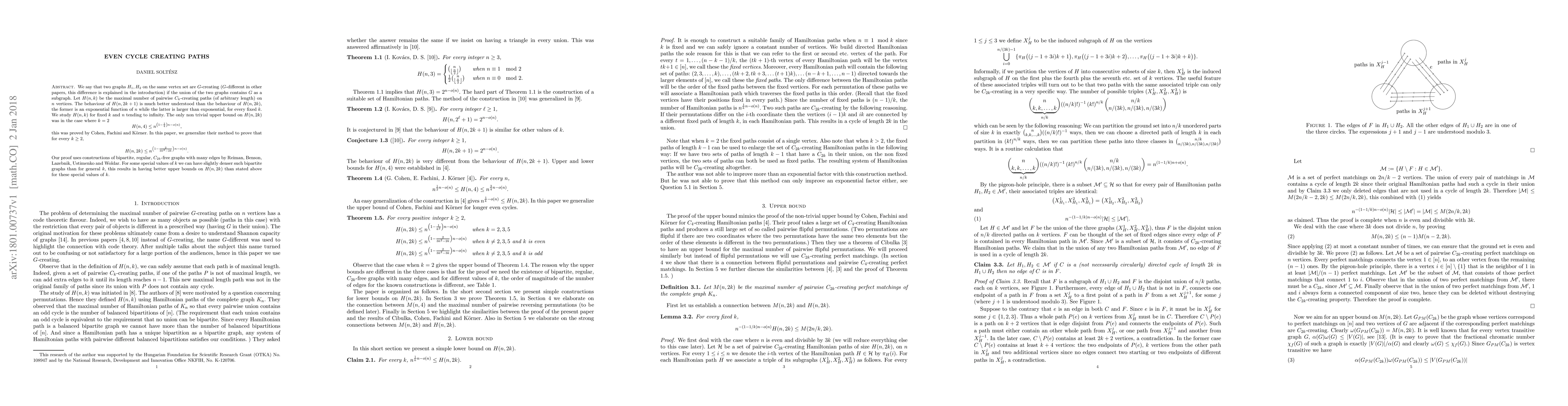 Researchers generalized an existing upper bound on the maximal number of pairwise $C_{2k}$-creating paths in a graph with n vertices to prove that it is at most $n^{rac{1 - rac{2}{3k^2-2k}}{n}}$ for all k >= 2.