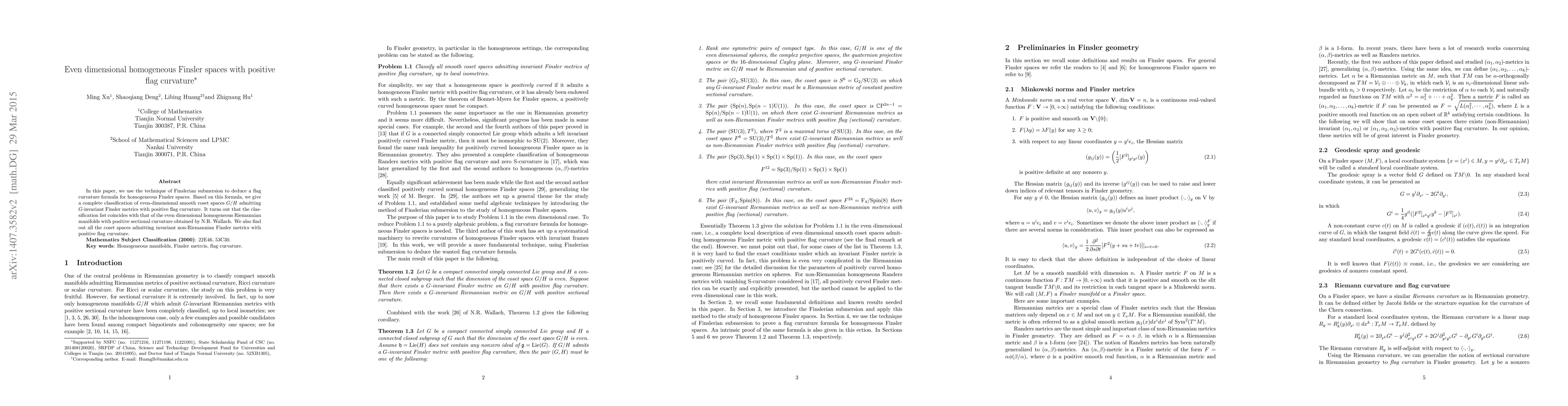This paper classifies even-dimensional homogeneous Finsler spaces with positive flag curvature using Finslerian submersion techniques, revealing that they coincide with even-dimensional homogeneous Riemannian manifolds with positive sectional curvature, as previously found by Wallach. It also identifies all coset spaces that allow invariant non-Riemannian Finsler metrics with positive flag curvature.