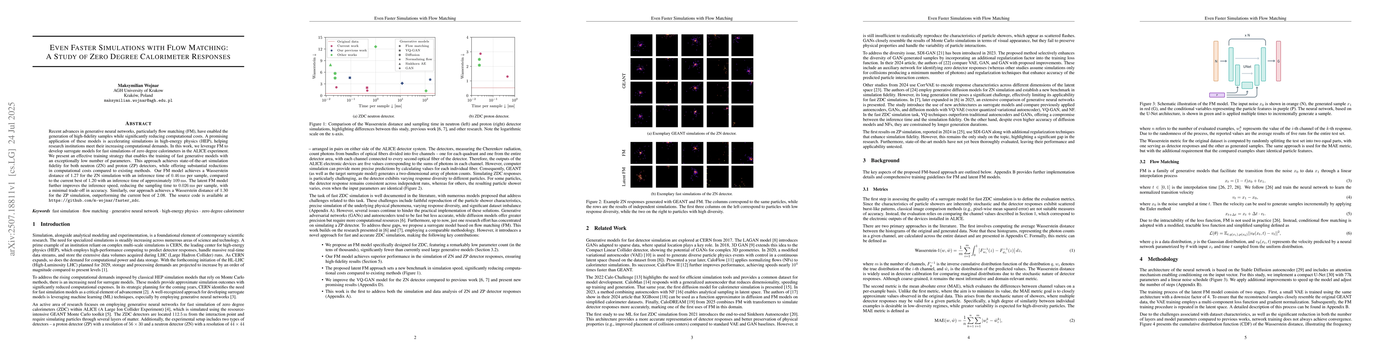 Recent advances in generative neural networks, particularly flow matching (FM), have enabled the generation of high-fidelity samples while significantly reducing computational costs. A promising application of these models is accelerating simulations in high-energy physics (HEP), helping research institutions meet their increasing computational demands. In this work, we leverage FM to develop surrogate models for fast simulations of zero degree calorimeters in the ALICE experiment. We present an effective training strategy that enables the training of fast generative models with an exceptionally low number of parameters. This approach achieves state-of-the-art simulation fidelity for both neutron (ZN) and proton (ZP) detectors, while offering substantial reductions in computational costs compared to existing methods. Our FM model achieves a Wasserstein distance of 1.27 for the ZN simulation with an inference time of 0.46 ms per sample, compared to the current best of 1.20 with an inference time of approximately 109 ms. The latent FM model further improves the inference speed, reducing the sampling time to 0.026 ms per sample, with a minimal trade-off in accuracy. Similarly, our approach achieves a Wasserstein distance of 1.30 for the ZP simulation, outperforming the current best of 2.08. The source code is available at https://github.com/m-wojnar/faster_zdc.