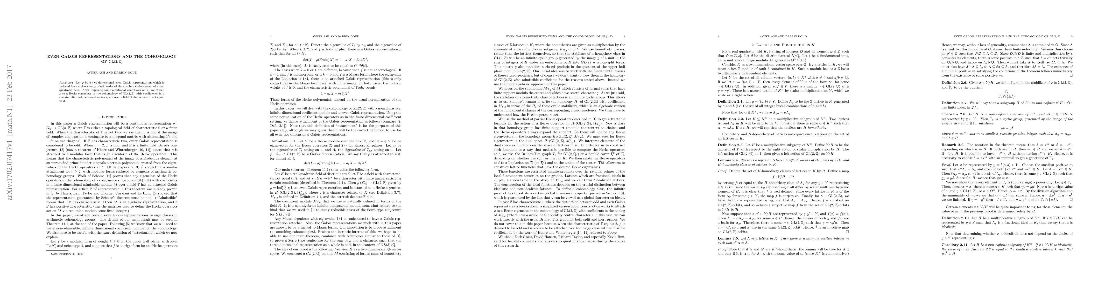 The paper introduces a novel method for associating even Galois representations with Hecke eigenclasses in the cohomology of GL(2,Z), utilizing techniques from the theory of Galois representations and cohomology.