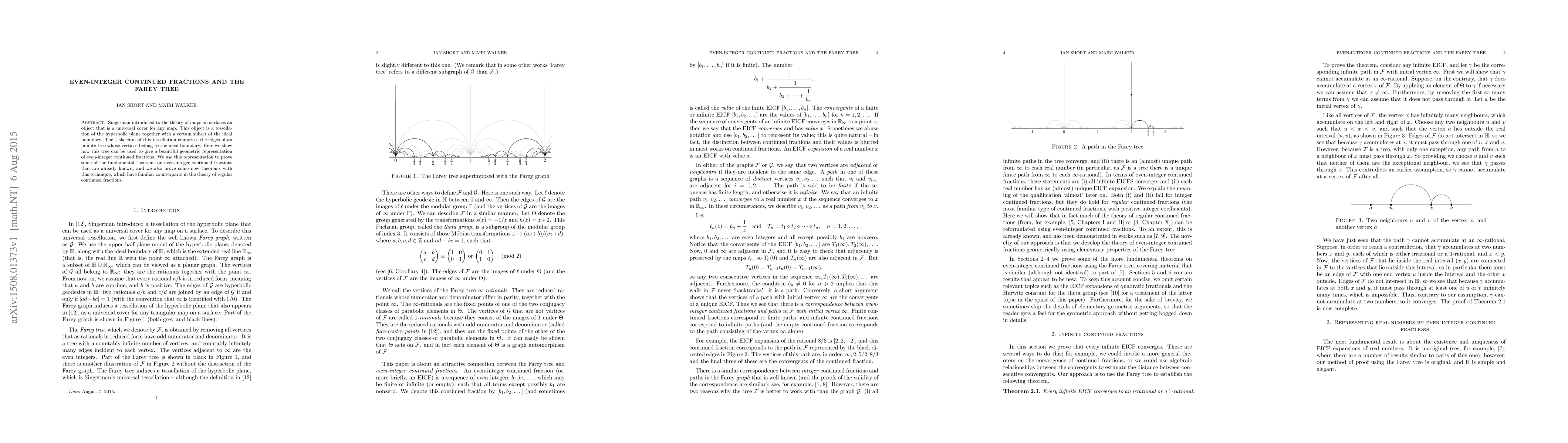 Singerman introduced to the theory of maps on surfaces an object that is a universal cover for any map. This object is a tessellation of the hyperbolic plane together with a certain subset of the ideal boundary. The 1-skeleton of this tessellation comprises the edges of an infinite tree whose vertices belong to the ideal boundary. Here we show how this tree can be used to give a beautiful geometric representation of even-integer continued fractions. We use this representation to prove some of the fundamental theorems on even-integer continued fractions that are already known, and we also prove some new theorems with this technique, which have familiar counterparts in the theory of regular continued fractions.