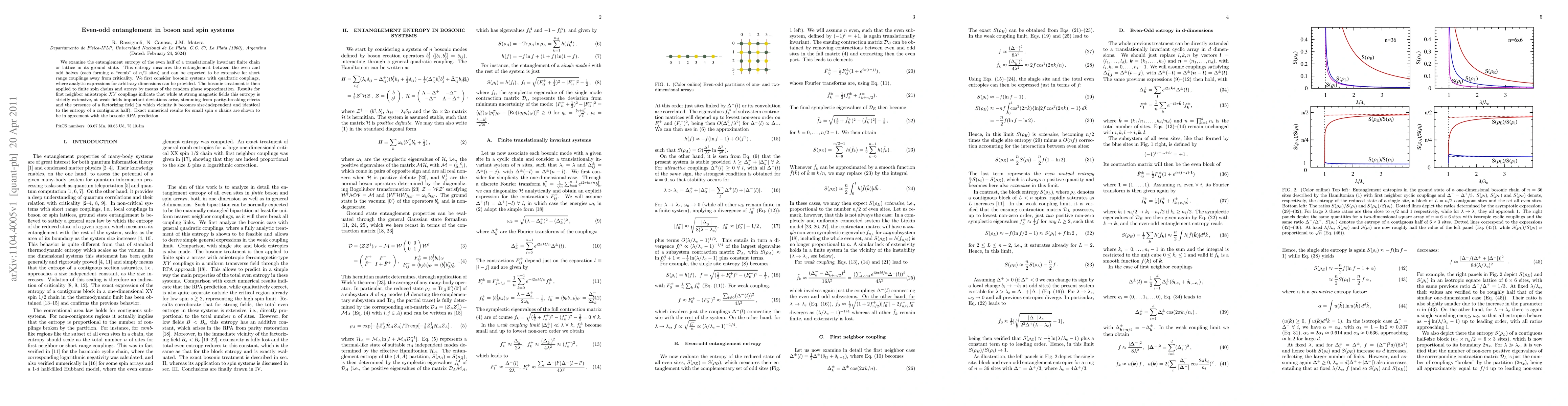 We examine the entanglement entropy of the even half of a translationally invariant finite chain or lattice in its ground state. This entropy measures the entanglement between the even and odd halves (each forming a "comb" of $n/2$ sites) and can be expected to be extensive for short range couplings away from criticality. We first consider bosonic systems with quadratic couplings, where analytic expressions for arbitrary dimensions can be provided. The bosonic treatment is then applied to finite spin chains and arrays by means of the random phase approximation. Results for first neighbor anisotropic XY couplings indicate that while at strong magnetic fields this entropy is strictly extensive, at weak fields important deviations arise, stemming from parity-breaking effects and the presence of a factorizing field (in which vicinity it becomes size-independent and identical to the entropy of a contiguous half). Exact numerical results for small spin s chains are shown to be in agreement with the bosonic RPA prediction.