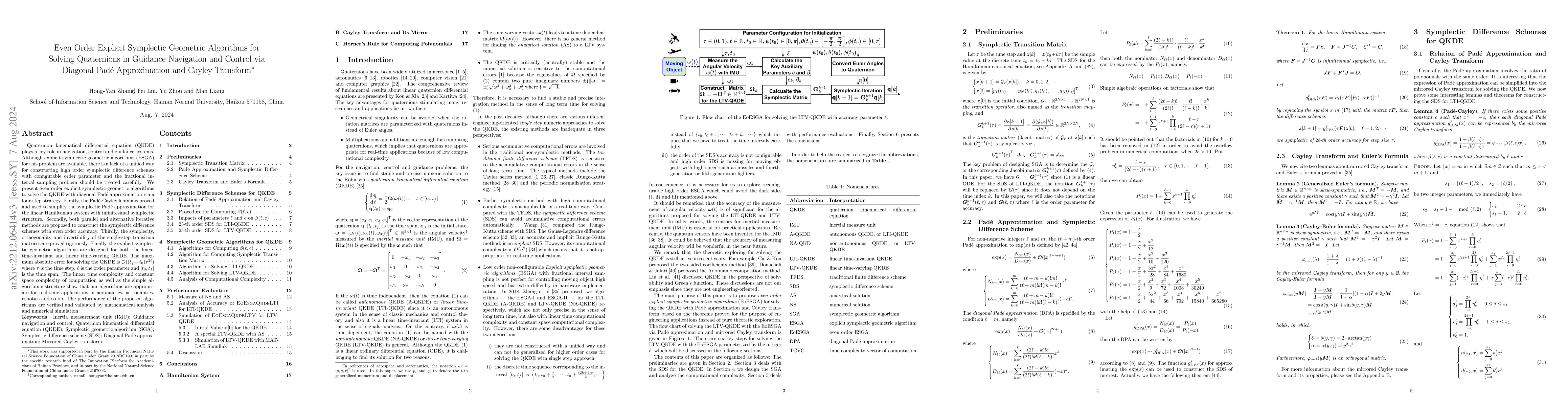 The Quaternion kinematical differential equation (QKDE) plays a key role in navigation, control and guidance systems. Although explicit symplectic geometric algorithms (ESGA) for this problem are available, there is a lack of a unified way for constructing high order symplectic difference schemes with configurable order parameter. We present even order explicit symplectic geometric algorithms to solve the QKDE with diagonal Pad\`{e} approximation and Cayley transform. The maximum absolute error for solving the QKDE is $\mathcal{O}(\tau^{2\ell})$ where $\tau$ is the time step and $\ell$ is the order parameter. The linear time complexity and constant space complexity of computation as well as the simple algorithmic structure show that our algorithms are appropriate for realtime applications in aeronautics, astronautics, robotics, visual-inertial odemetry and so on. The performance of the proposed algorithms are verified and validated by mathematical analysis and numerical simulation.