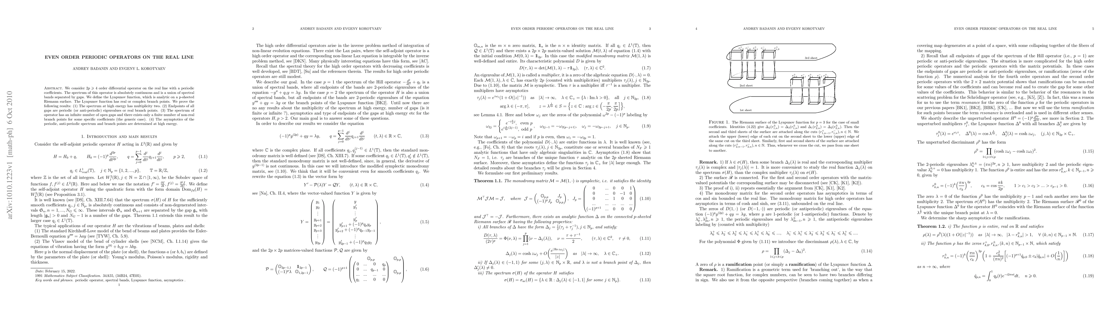This research paper explores periodic operators on the real line with periodic coefficients, revealing key features of their spectrum including gaps, branch points, and asymptotic behaviors at high energy.