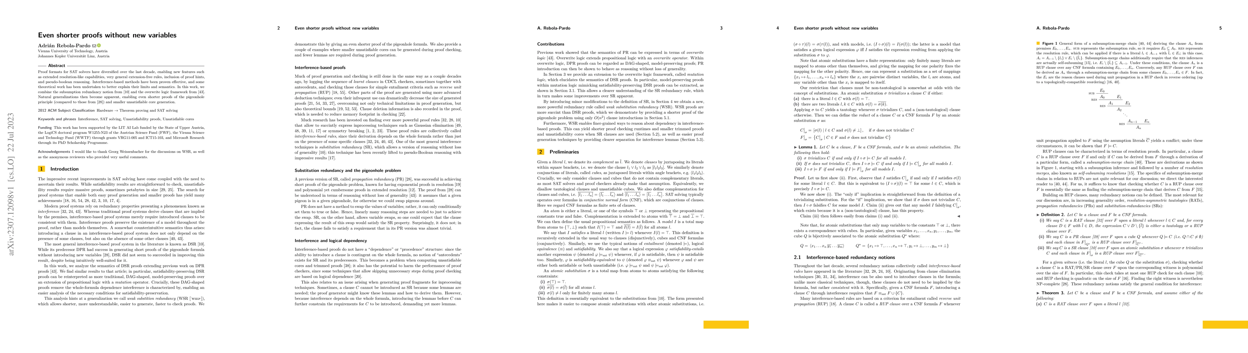 Proof formats for SAT solvers have diversified over the last decade, enabling new features such as extended resolution-like capabilities, very general extension-free rules, inclusion of proof hints, and pseudo-boolean reasoning. Interference-based methods have been proven effective, and some theoretical work has been undertaken to better explain their limits and semantics. In this work, we combine the subsumption redundancy notion from (Buss, Thapen 2019) and the overwrite logic framework from (Rebola-Pardo, Suda 2018). Natural generalizations then become apparent, enabling even shorter proofs of the pigeonhole principle (compared to those from (Heule, Kiesl, Biere 2017)) and smaller unsatisfiable core generation.