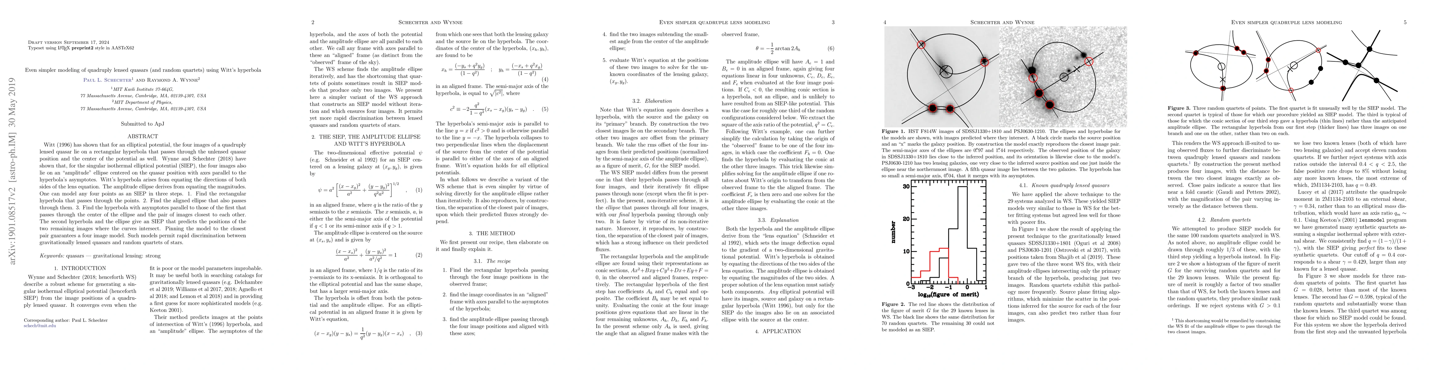 This paper proposes a simplified modeling technique for quadruply lensed quasars using Witt's hyperbola and an amplitude ellipse, allowing for quick differentiation between gravitationally lensed quasars and random star quartets. The method involves constructing a rectangular hyperbola and an aligned ellipse to predict the positions of the lensed images.