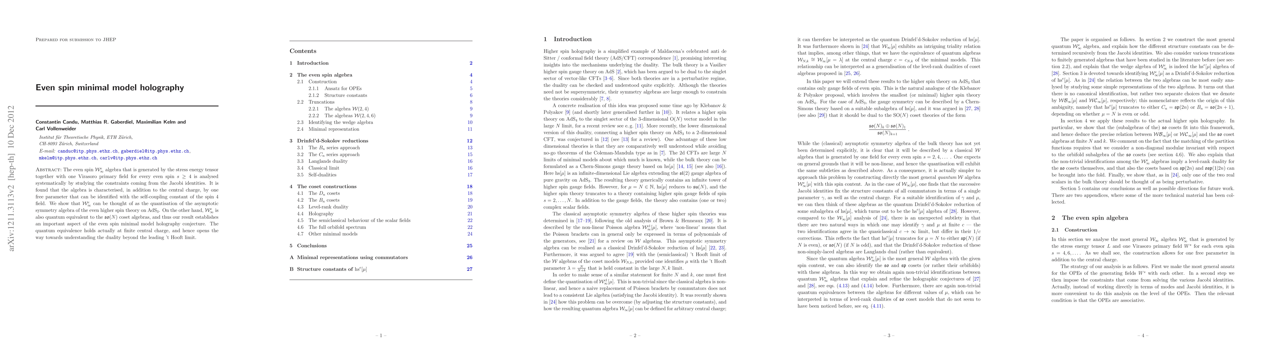 This paper explores the even spin W^e_\infty algebra, identifying it as the asymptotic symmetry algebra of even higher spin theory on AdS_3. It establishes a quantum equivalence between W^e_\infty and so(N) coset algebras, supporting the even spin minimal model holography conjecture.