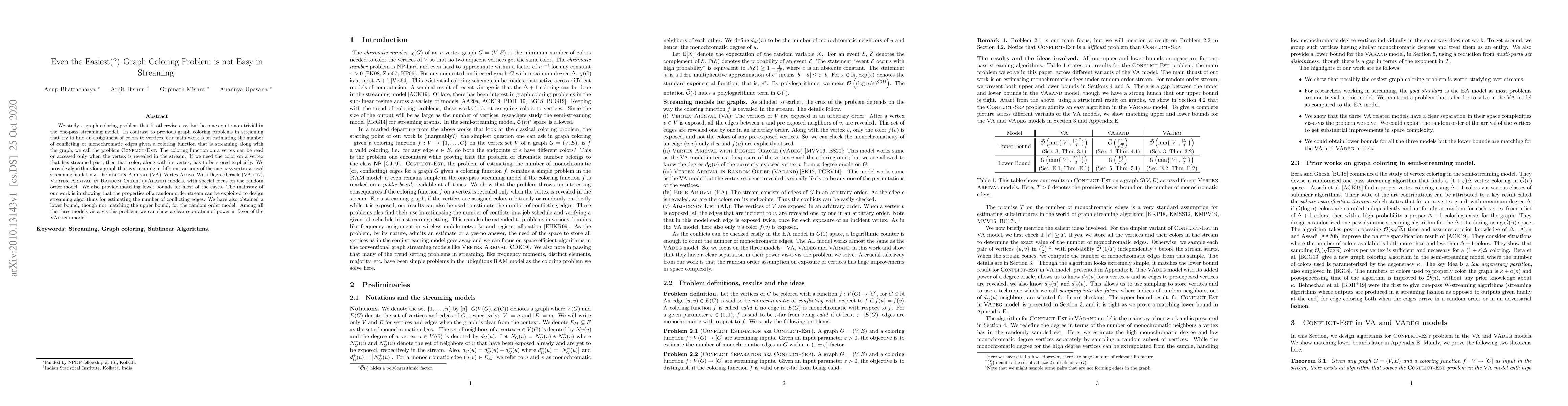 This paper explores the complexity of estimating the number of conflicting edges in graph coloring problems within the one-pass streaming model, termed {\sc Conflict-Est}. It provides algorithms for different streaming models, highlighting the advantages of the {\sc Vertex Arrival in Random Order} ({\sc VArand}) model, and establishes matching lower bounds for most cases, demonstrating the non-trivial nature of the problem even when graph coloring is straightforward.