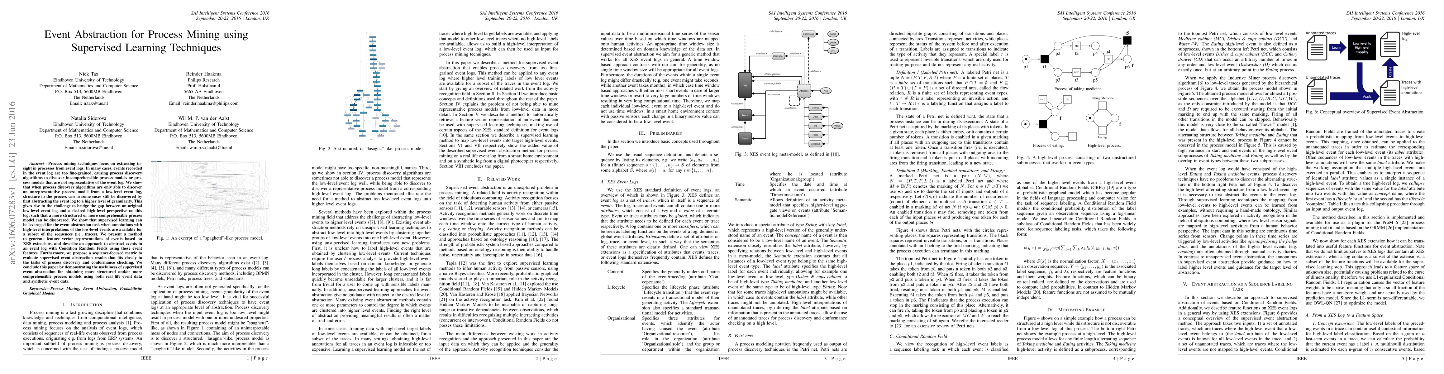 This paper proposes leveraging supervised learning techniques to abstract fine-grained event logs into higher-level representations, enhancing the comprehensibility of process models. It introduces a method using Condition Random Fields and feature vector representations to achieve this abstraction, validated through real and synthetic data.