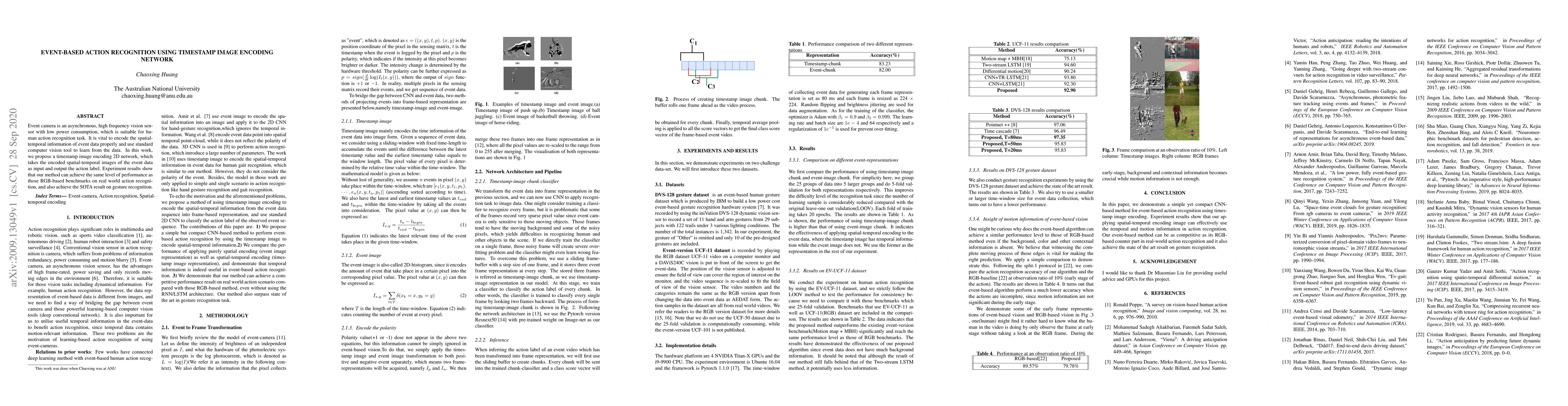 This paper proposes a timestamp image encoding 2D network to recognize actions using event camera data, which captures spatial-temporal information asynchronously. The method achieves state-of-the-art results in gesture recognition and performs competitively compared to RGB-based benchmarks.