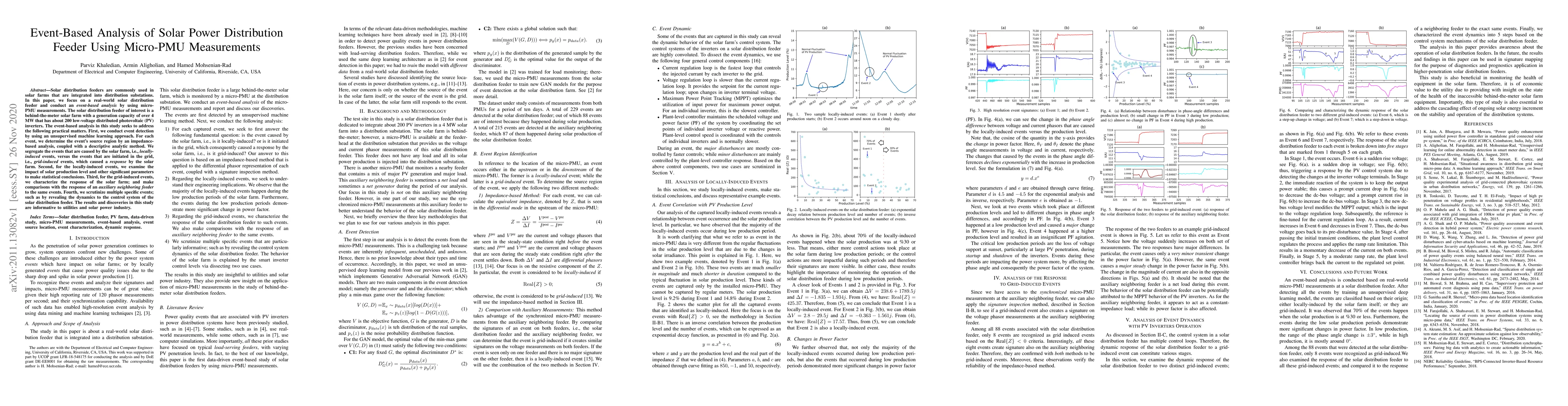 This paper conducts an event-based analysis of a real-world solar distribution feeder using micro-PMU measurements, employing unsupervised machine learning for event detection and impedance-based analysis to differentiate between locally-induced and grid-induced events. The study provides insights into the solar farm's response to various events and the impact of solar production levels on locally-induced events.