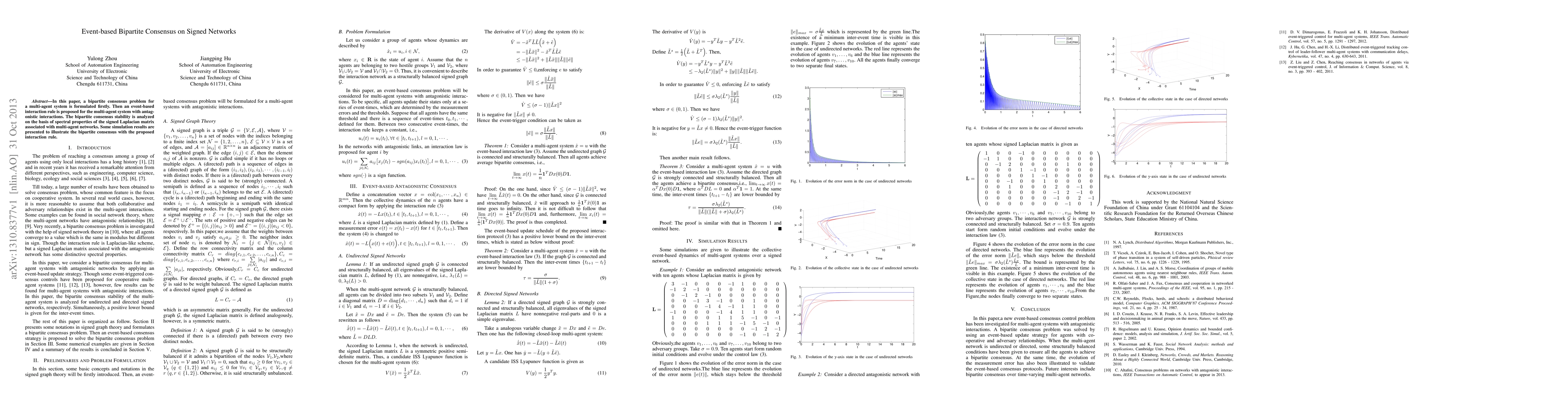 This paper formulates a bipartite consensus problem for multi-agent systems with antagonistic interactions, proposing an event-based interaction rule. It analyzes the consensus stability using spectral properties of the signed Laplacian matrix and presents simulation results to demonstrate the effectiveness of the proposed method.