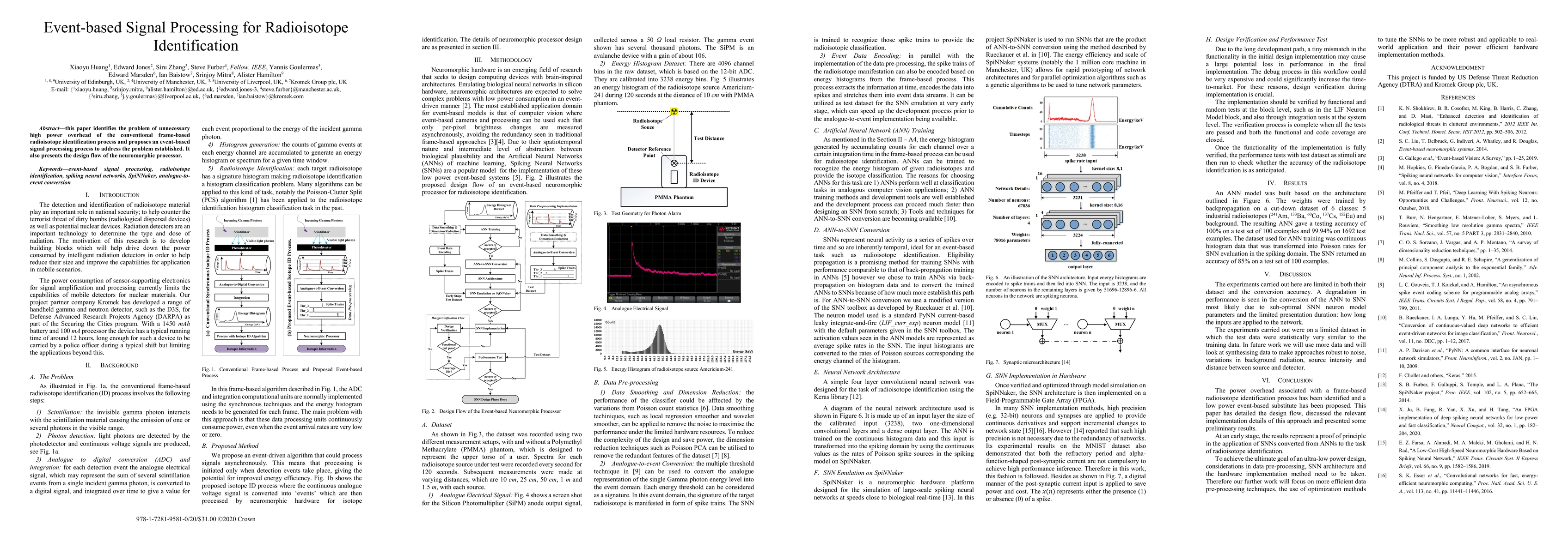This paper identifies the problem of unnecessary high power overhead of the conventional frame-based radioisotope identification process and proposes an event-based signal processing process to address the problem established. It also presents the design flow of the neuromorphic processor.
