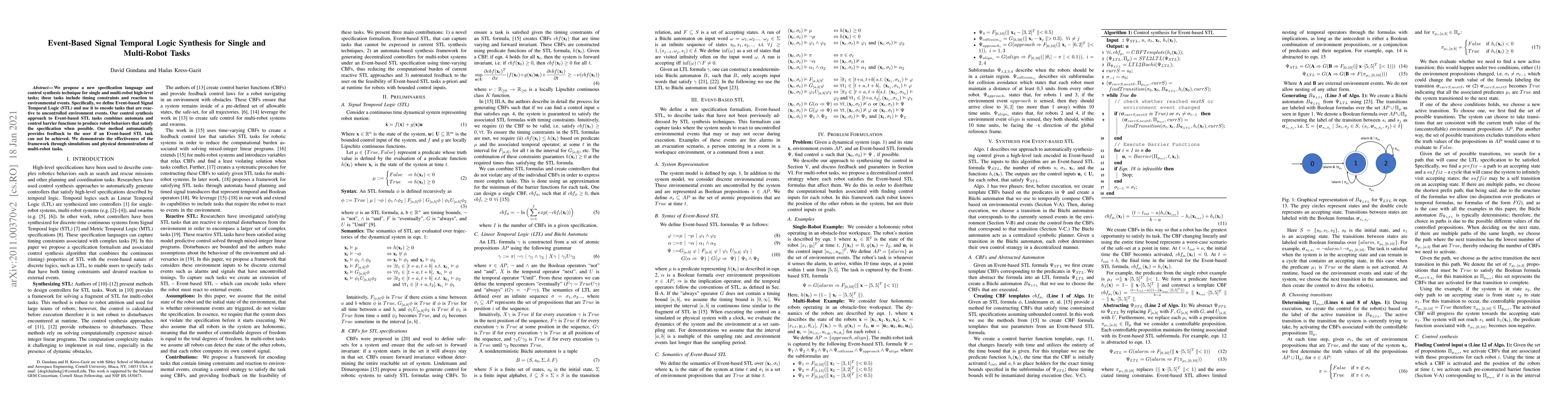 This paper introduces Event-based Signal Temporal Logic (STL) for specifying and synthesizing control for single and multi-robot tasks, incorporating timing constraints and environmental event reactions. The proposed synthesis technique combines automata and control barrier functions to generate feasible robot behaviors, providing feedback if task achievement is impossible.