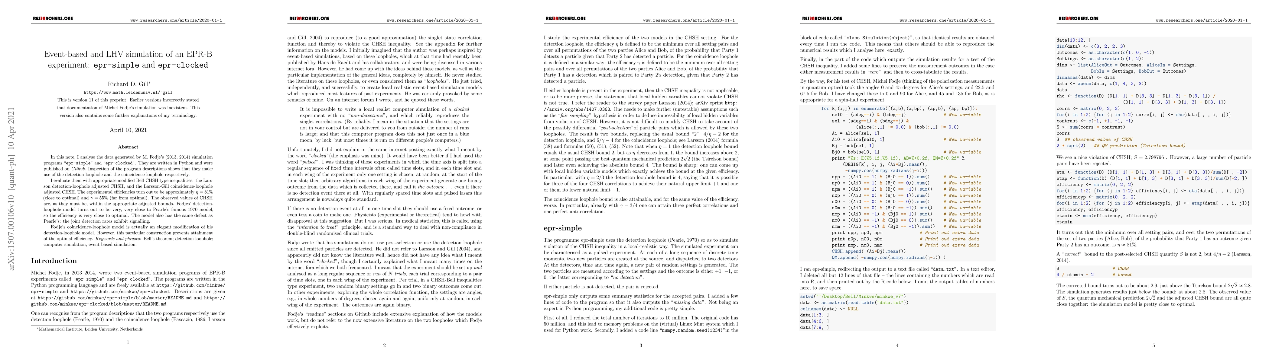 In this note, I analyze the data generated by M. Fodje's (2013, 2014) simulation programs "epr-simple" and "epr-clocked". They were written in Python and published on Github. Inspection of the program descriptions showed that they made use of the detection-loophole and the coincidence-loophole respectively. I evaluate them with appropriate modified Bell-CHSH type inequalities: the Larsson detection-loophole adjusted CHSH, and the Larsson-Gill coincidence-loophole adjusted CHSH (NB: its correctness is conjecture, we do not have proof). The experimental efficiencies turn out to be approximately eta = 81% (close to optimal) and gamma = 55% (far from optimal). The observed values of CHSH are, as they should be, within the appropriately adjusted bounds. Fodjes' detection-loophole model turns out to be very, very close to Pearle's famous 1970 model, so the efficiency is close to optimal. The model has the same defect as Pearle's: the joint detection rates exhibit signalling. His coincidence-loophole model is actually a clever modification of his detection-loophole model. Because of this, however, it cannot lead to optimal efficiency.