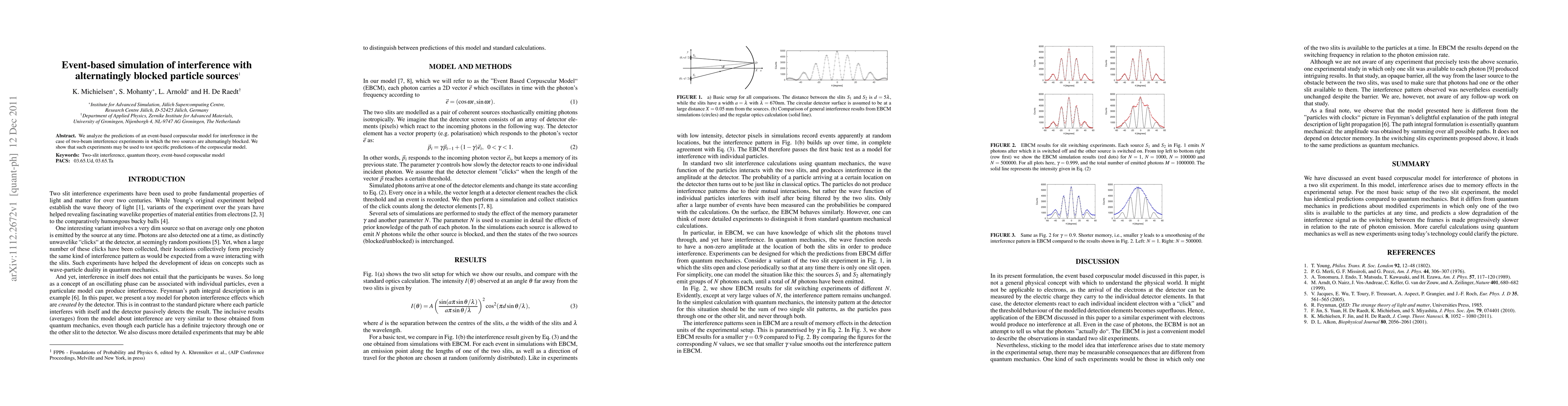 This paper examines an event-based corpuscular model for interference in two-beam experiments where particle sources are alternately blocked, demonstrating its potential to test specific model predictions. The study highlights the model's applicability in understanding interference phenomena under varying source conditions.