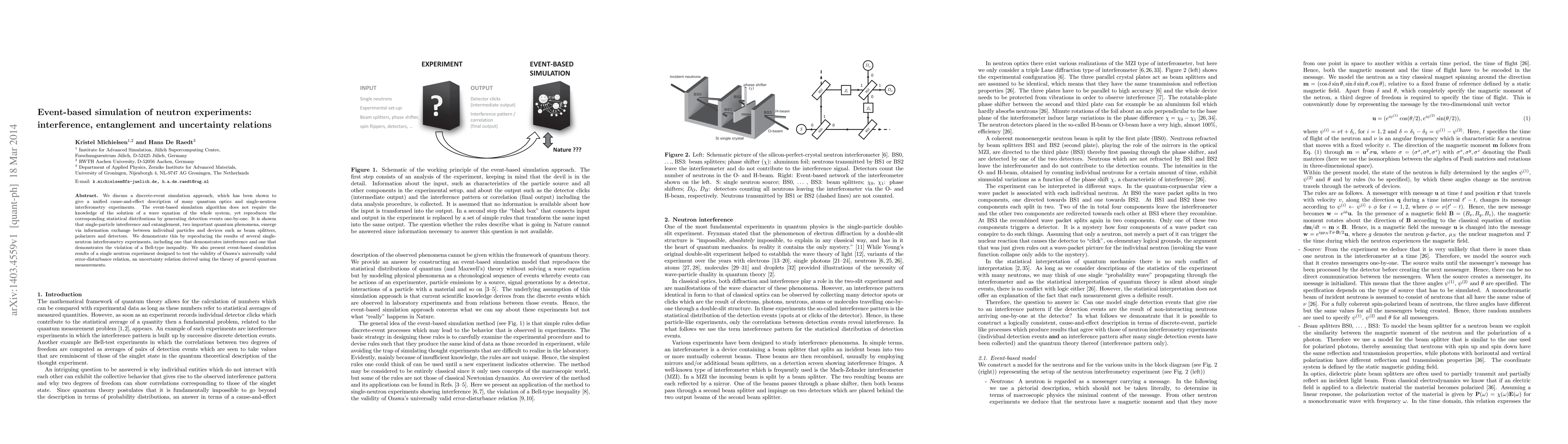 We discuss a discrete-event simulation approach, which has been shown to give a unified cause-and-effect description of many quantum optics and single-neutron interferometry experiments. The event-based simulation algorithm does not require the knowledge of the solution of a wave equation of the whole system, yet reproduces the corresponding statistical distributions by generating detection events one-by-one. It is showm that single-particle interference and entanglement, two important quantum phenomena, emerge via information exchange between individual particles and devices such as beam splitters, polarizers and detectors. We demonstrate this by reproducing the results of several single-neutron interferometry experiments, including one that demonstrates interference and one that demonstrates the violation of a Bell-type inequality. We also present event-based simulation results of a single neutron experiment designed to test the validity of Ozawa's universally valid error-disturbance relation, an uncertainty relation derived using the theory of general quantum measurements.