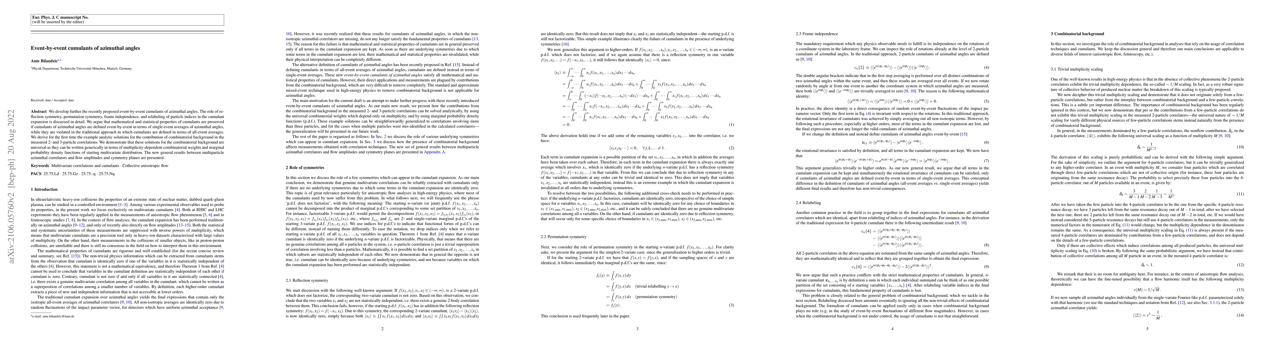 This paper refines the concept of event-by-event cumulants for azimuthal angles, emphasizing their preservation of mathematical and statistical properties when defined via single-event averages. It also provides analytic solutions for combinatorial background contributions in 2- and 3-particle correlations, demonstrating universal applicability through multiplicity-dependent weights.